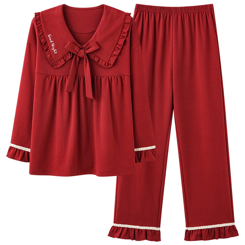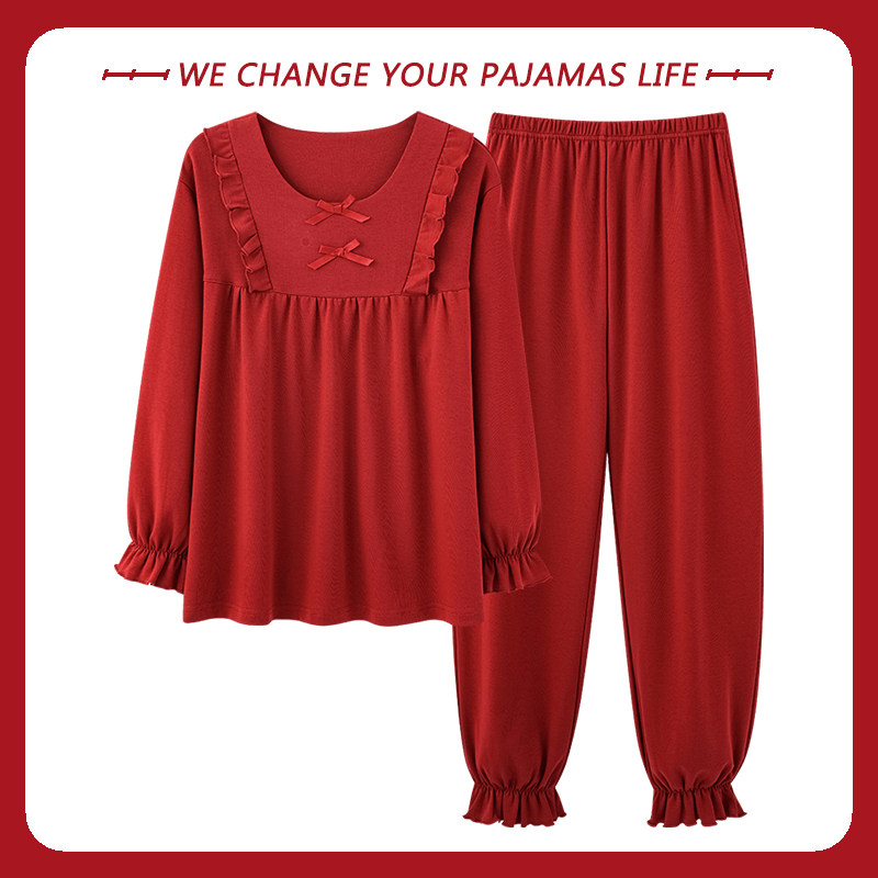 👗 先说说这款睡衣的外观吧!真的是超级可爱,长袖设计,显得整个人都充满了公主风。红色系的配色,更是显得特别喜庆,本命年也能穿出自己的风格。💖