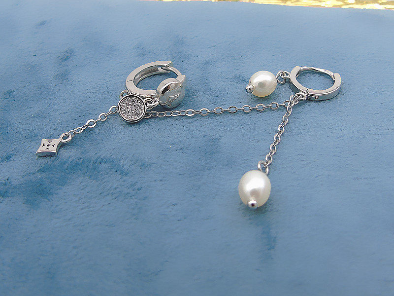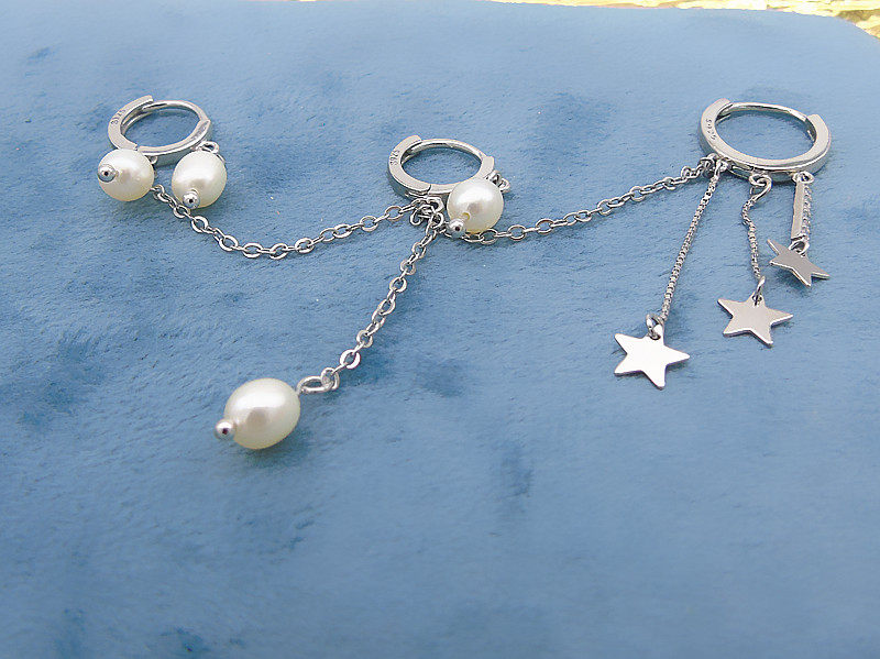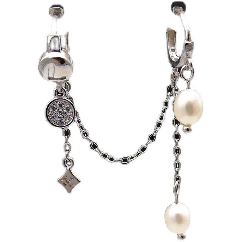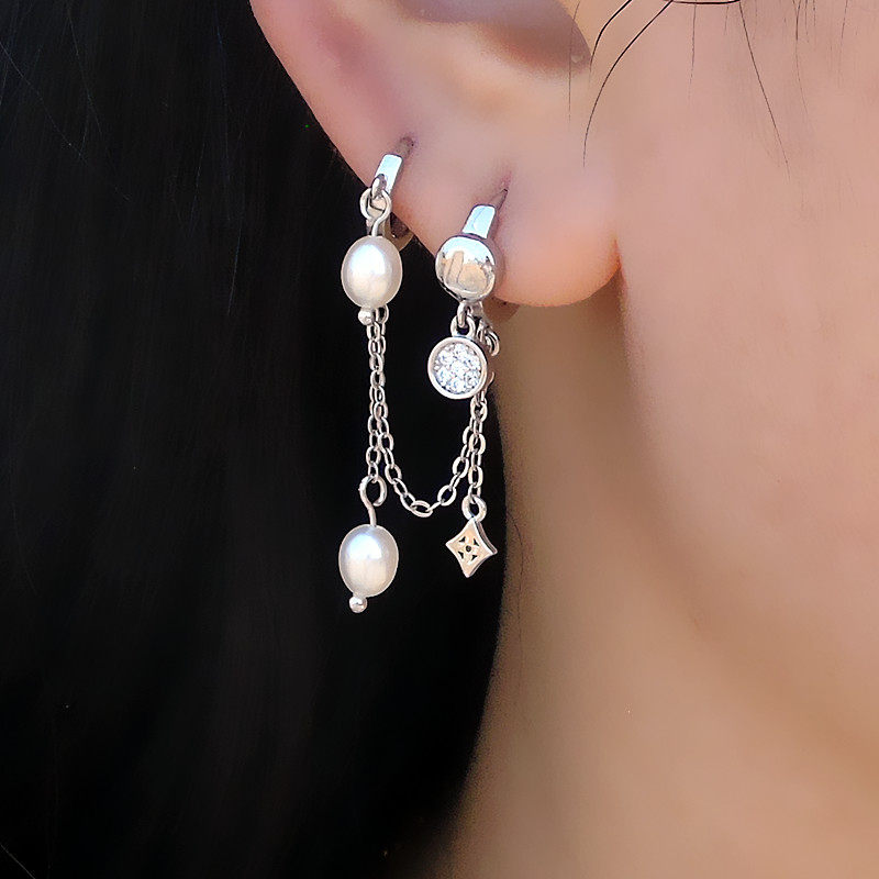 📚 925纯银新潮连体淡水珍珠耳扣一体式双耳洞三耳洞耳环短流苏 耳坠