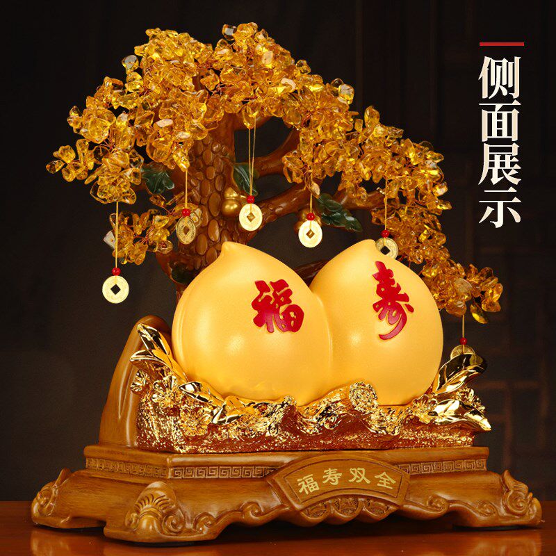📚 福寿双全发d财树寿桃摆件祝贺爷爷奶奶老人过大寿生日送长辈礼物