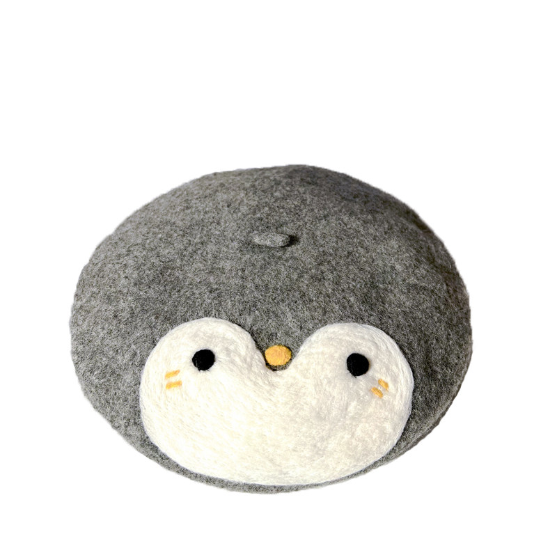 📚 软萌日系手工羊毛毡可爱小企鹅贝雷帽秋冬新款亲子蓓蕾帽画家帽子