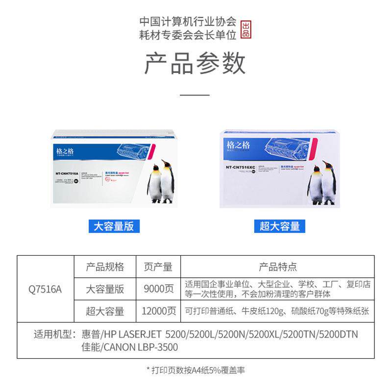 📚 格之格Q7516A碳粉盒适HP5200LX5200L5200N5200TN5200DTN硒鼓