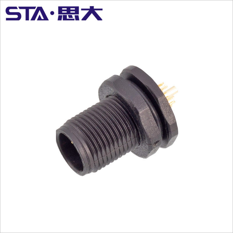 📚 M12航空插头3 4 5 8 12 17芯塑胶料法兰插座焊线 PCB板防水连接器
