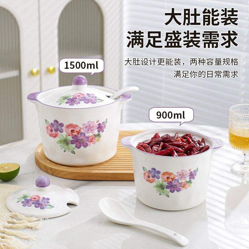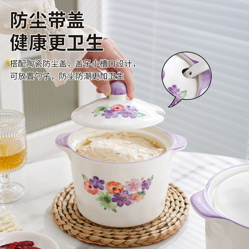 📚 陶瓷猪油罐家用耐高温厨房多用罐调味罐辣椒油罐带盖带勺大容量