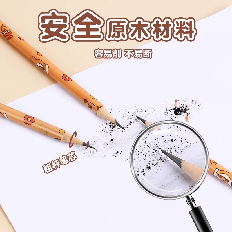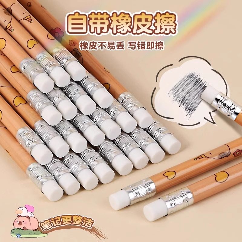 📚 卡皮巴拉儿童卡通铅笔小学生一年级二年级学生专用hb铅笔带橡皮擦头幼儿园初学者写字练字笔绘画铅笔套装2B