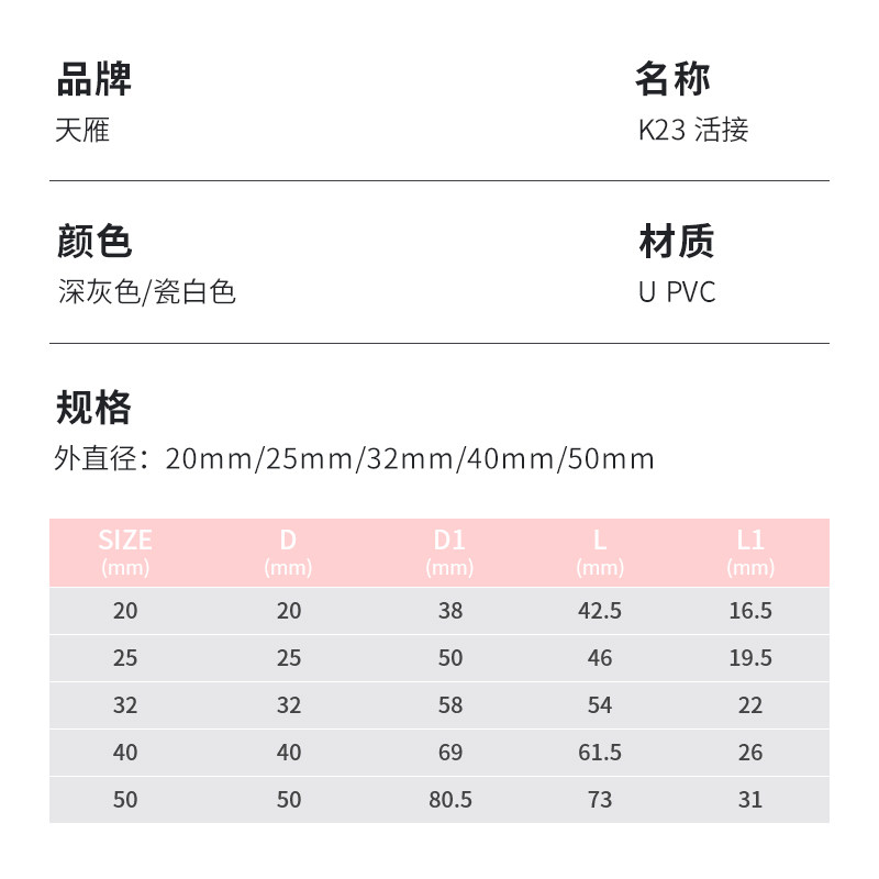 💥种草!天雁管件鱼缸专用UPVC水管活接配件,券后仅4.8元,你值得拥有!