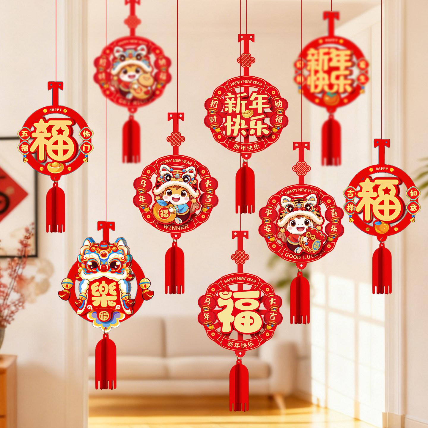 📚 2026马年客厅装饰商场店铺吊顶挂饰新年主题活动氛围场景布置挂件