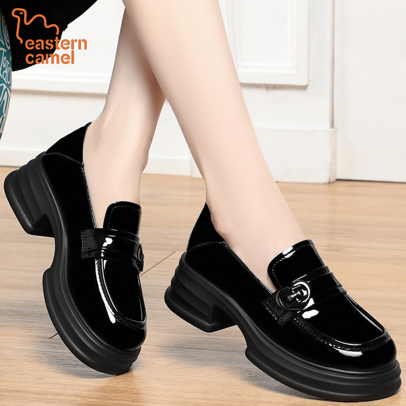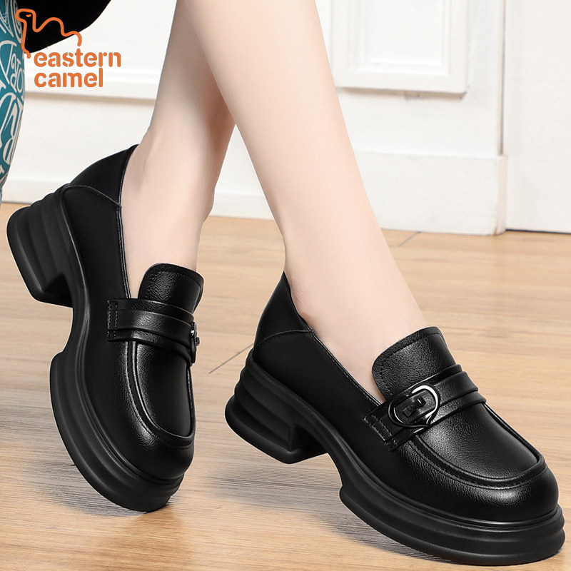 📚 东方骆驼EASTERNCAMEL乐福鞋舒适粗跟厚底妈妈鞋圆头舒适单鞋皮鞋