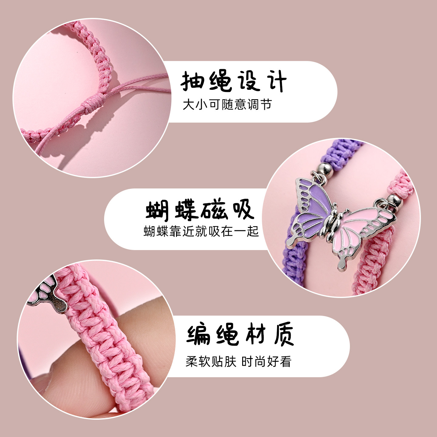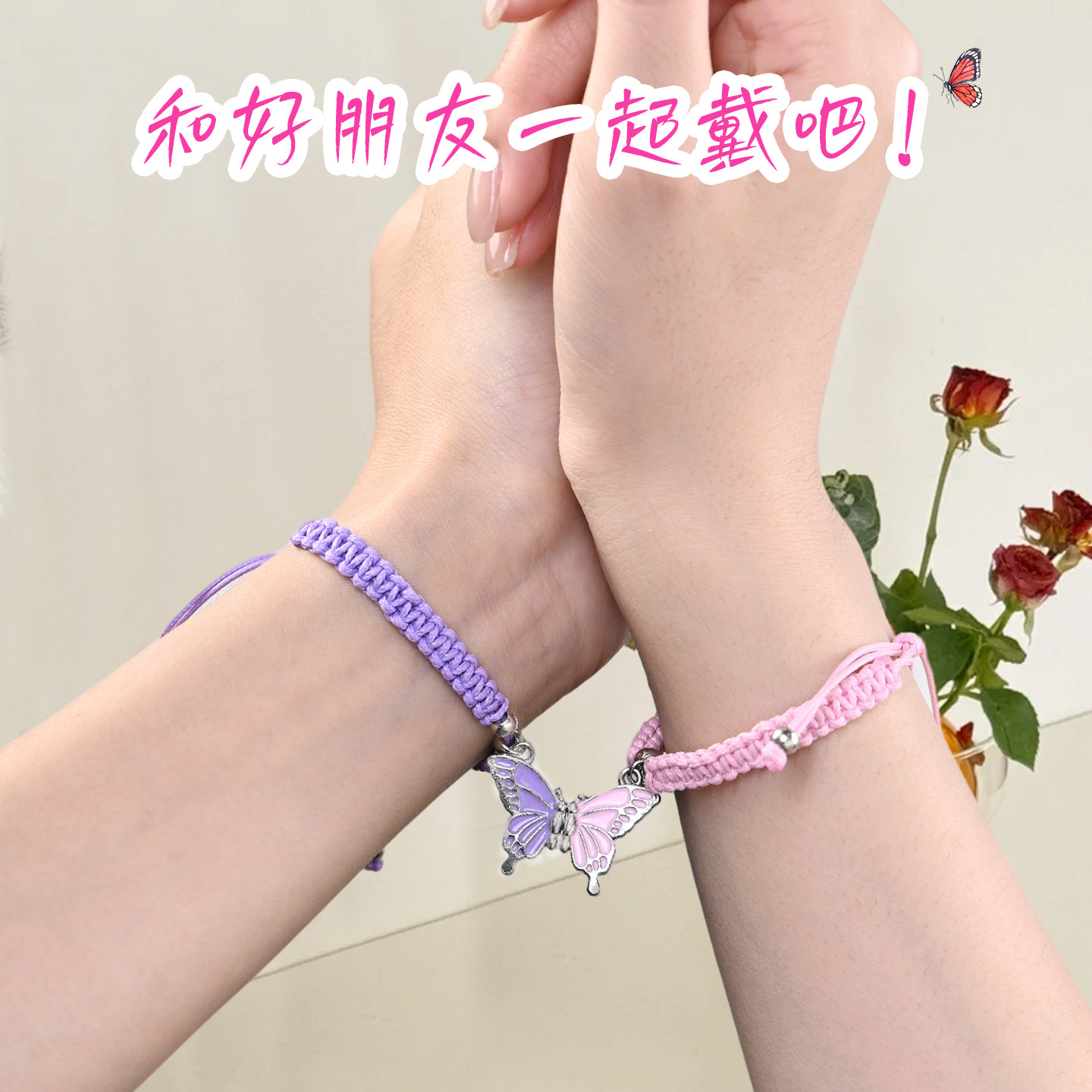 📚 手链高颜值学生党闺蜜二人款儿童姐妹信物磁吸蝴蝶手绳友谊礼物女