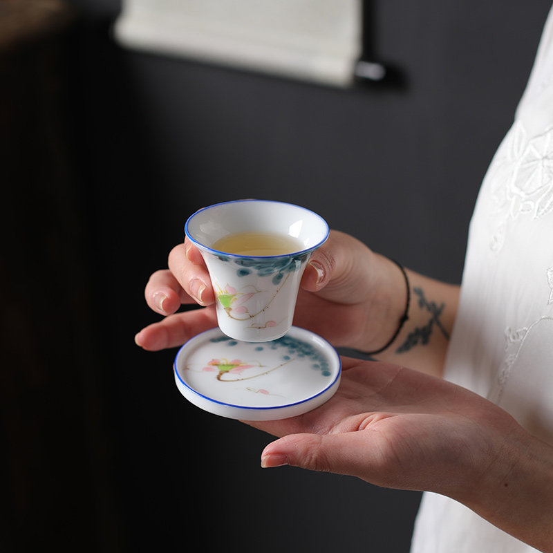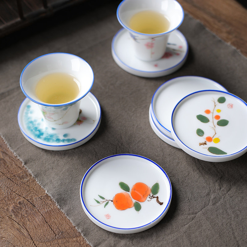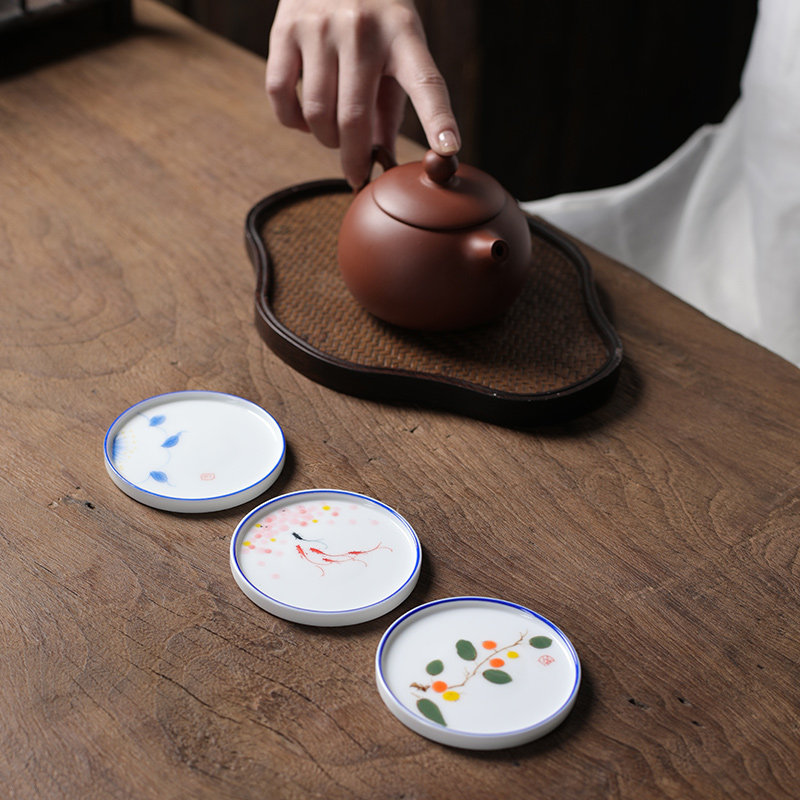📚 手绘陶瓷茶具杯垫功夫茶杯垫隔热防烫手工小号青花瓷茶托茶道配件
