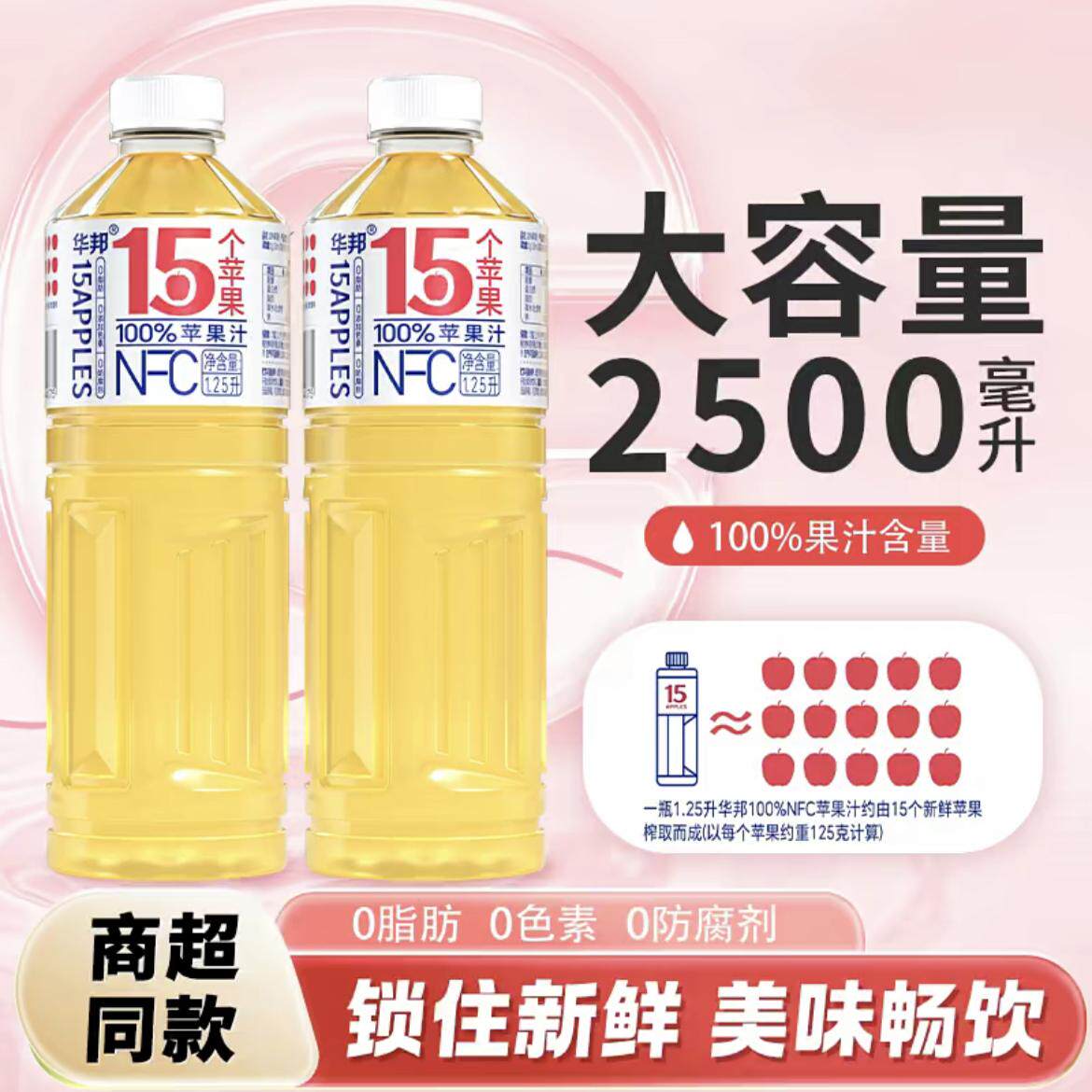 📚 华邦苹果汁酸甜解渴0脂肪饮料1.25升家庭大瓶装NFC水果饮品