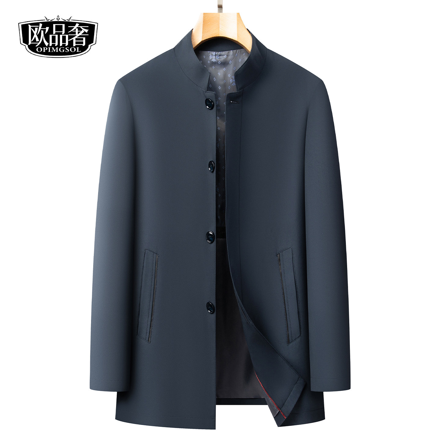 📚 高端行政夹克男士常规立领纯色风衣春秋新款商务通勤中年男装外套