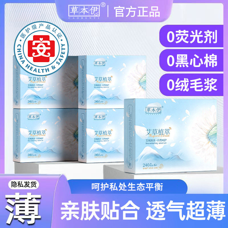 📚 草本伊艾草卫生巾迷你棉柔180mm量少日用有护翼姨妈巾正品组合装
