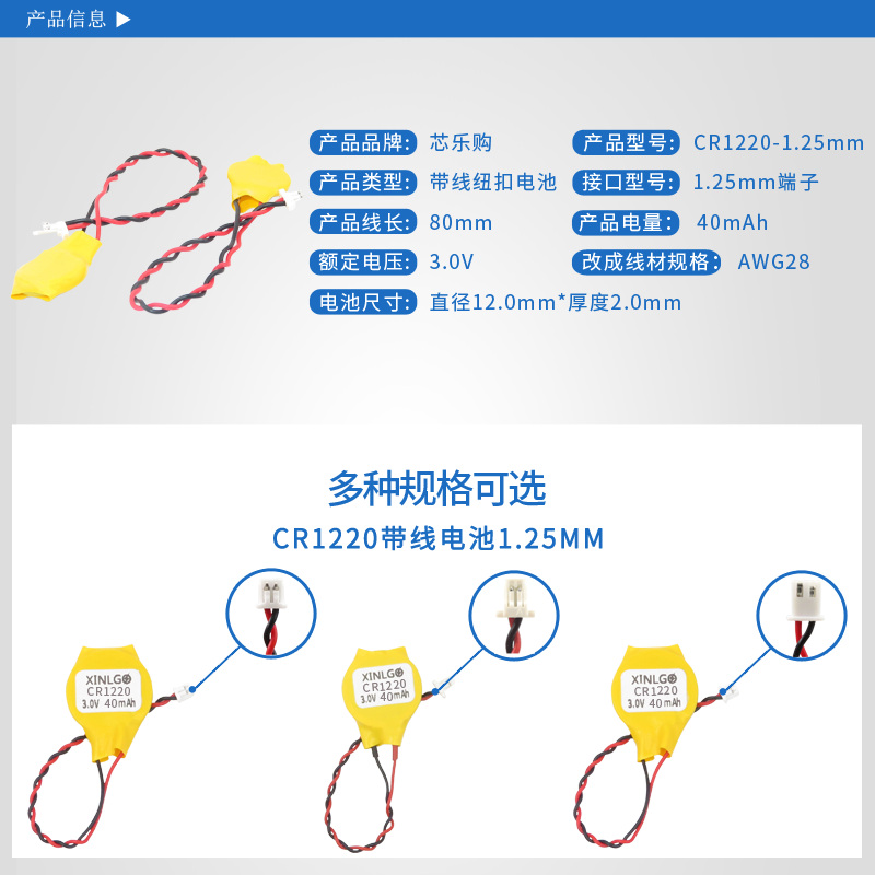 📚 CR1220带线1.25插头3V纽扣电池两孔两线IBM笔记本主板焊线锂电子