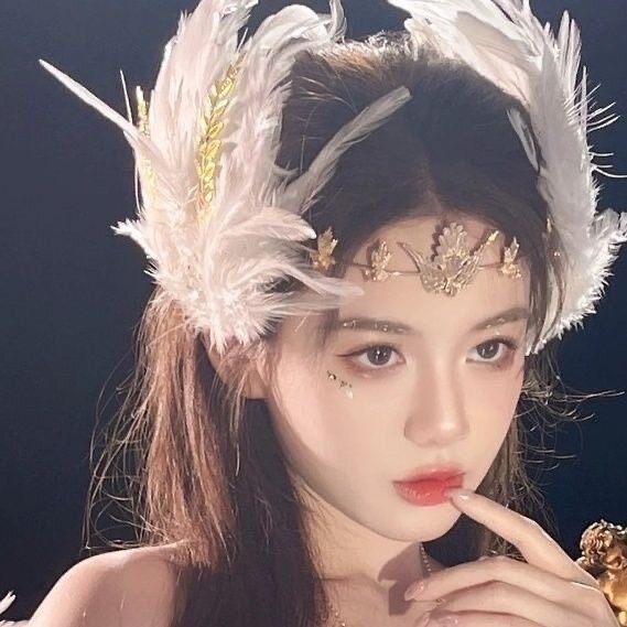 📚 新款金色圣母光环白色羽毛新娘头饰洛丽塔走秀cos拍照古风毛毛