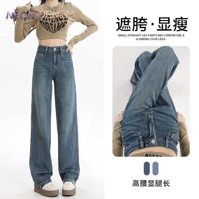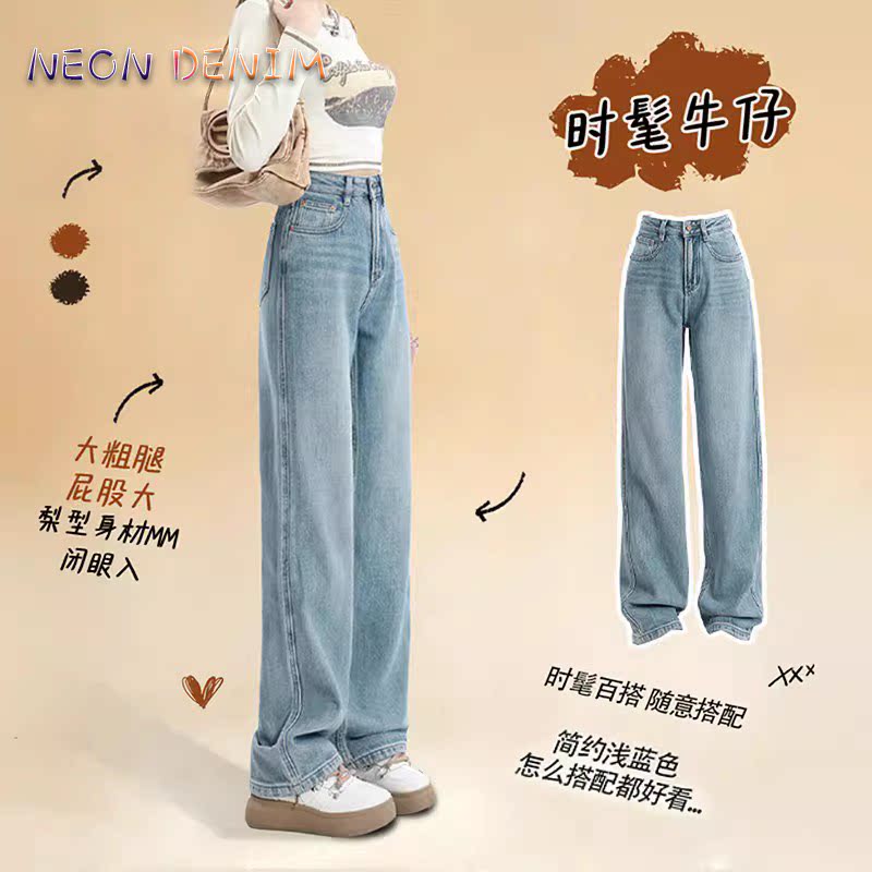 📚 广州新塘窄版阔腿牛仔裤女春季2026新款高腰小个子宽松梨形报恩裤