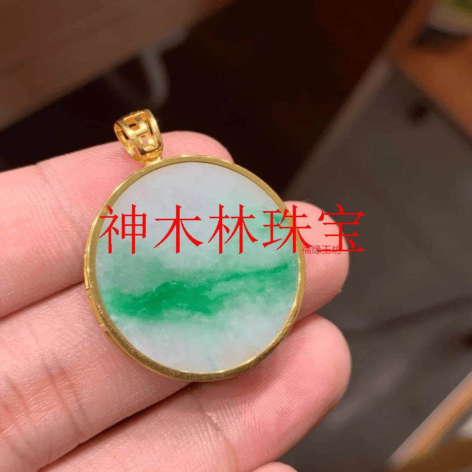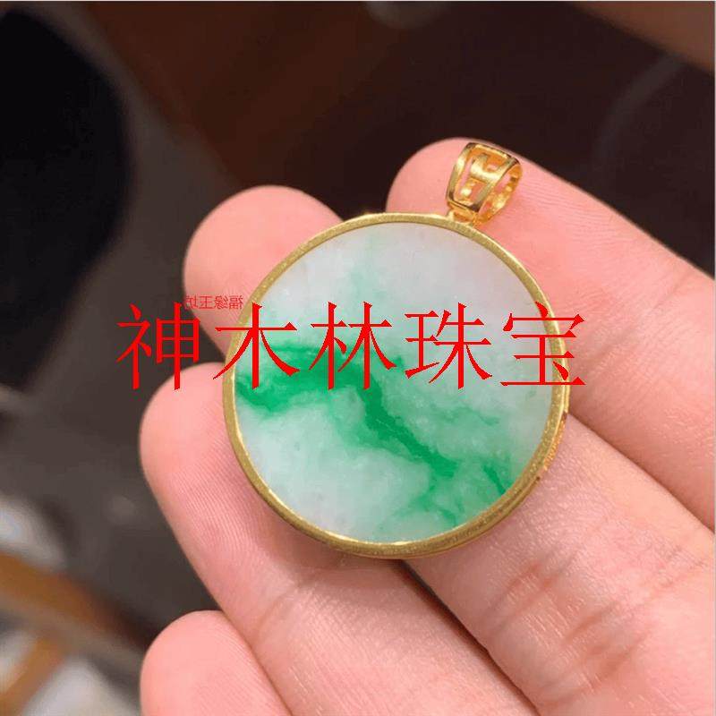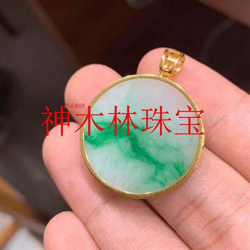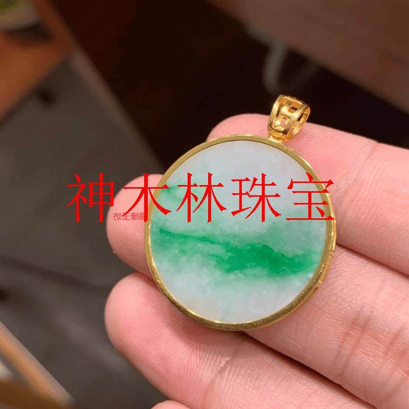 📚 白底青阳绿飘花翡翠色无事牌国风吊坠缅甸新中式锁骨链玉圆牌项链