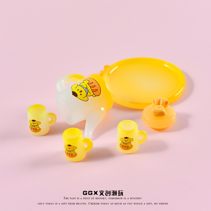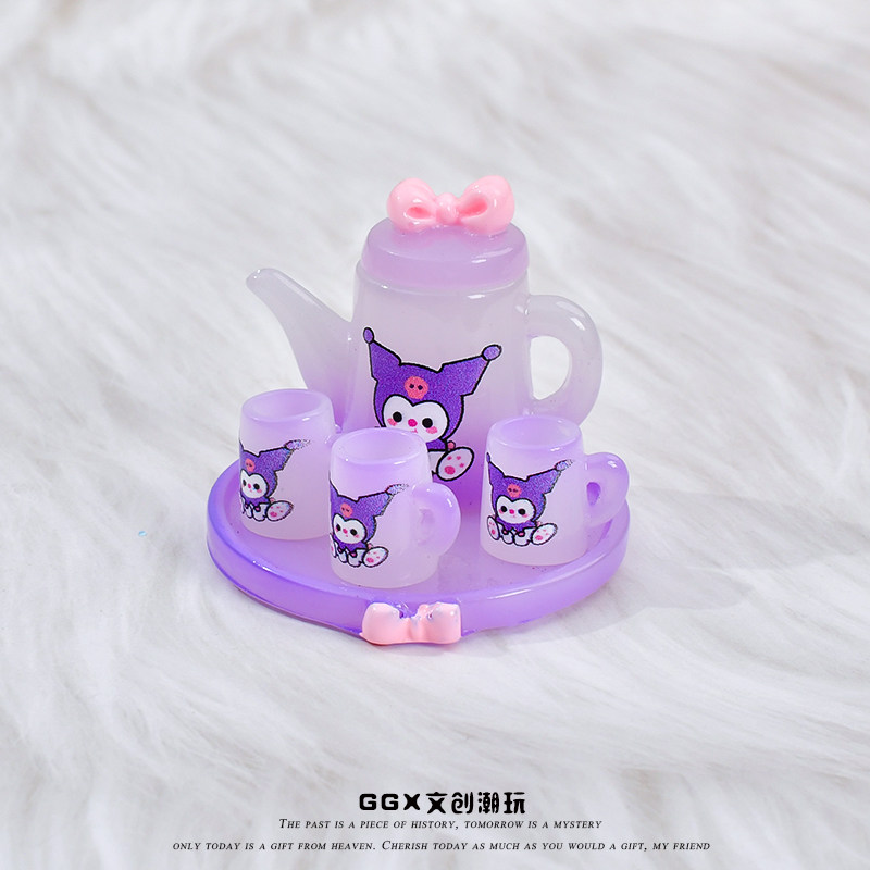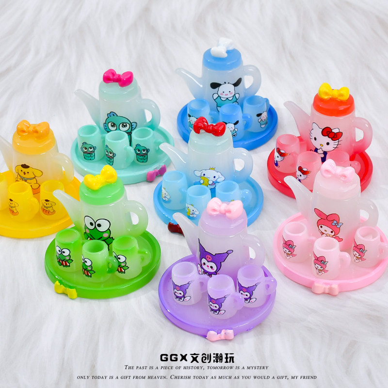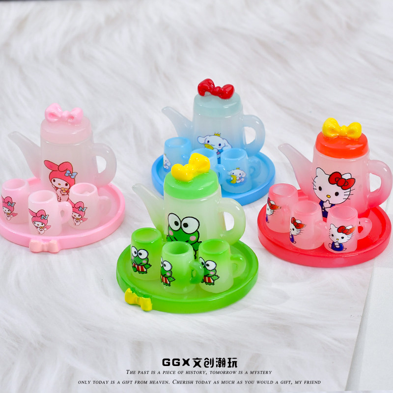 📚 可爱仿真迷你夜光卡通茶具套装水壶水杯微缩模型微景观摆件非玩具