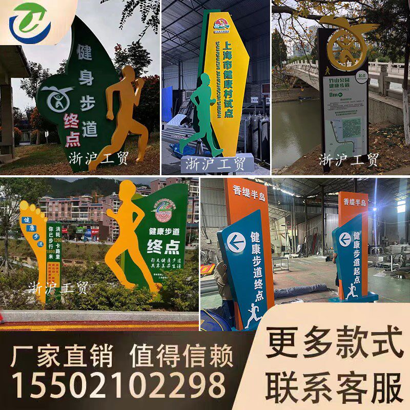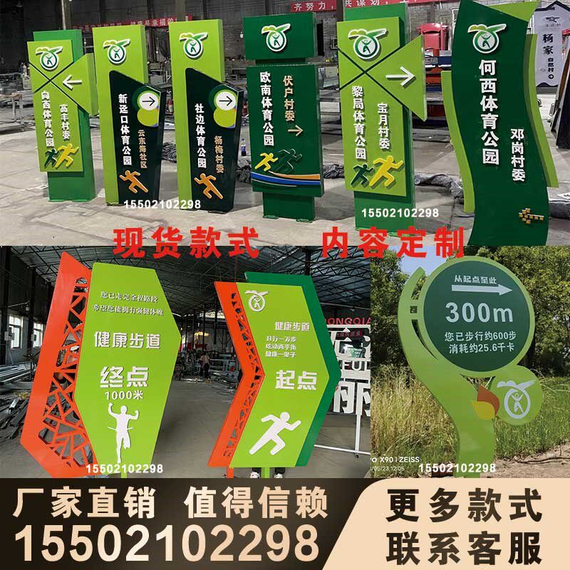 📚 健康主题公园起点终点牌跑道导视牌里程提示牌造型健康步道米数牌