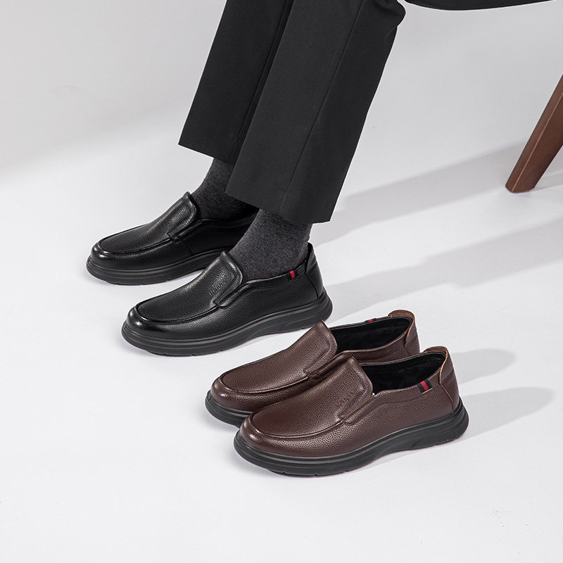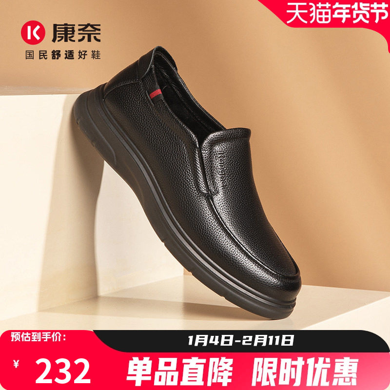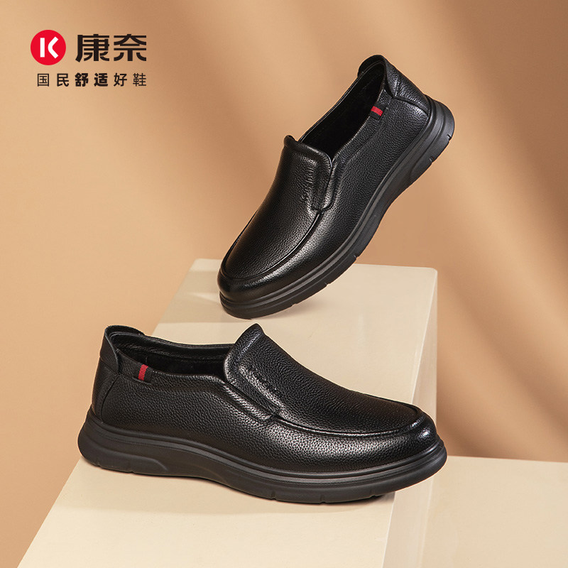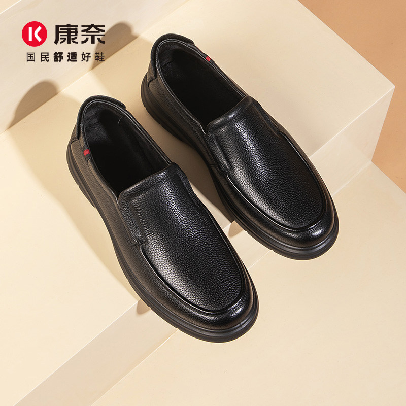 📚 康奈男鞋秋冬加绒商务皮鞋休闲百搭一脚蹬牛皮软底爸爸鞋男士单鞋