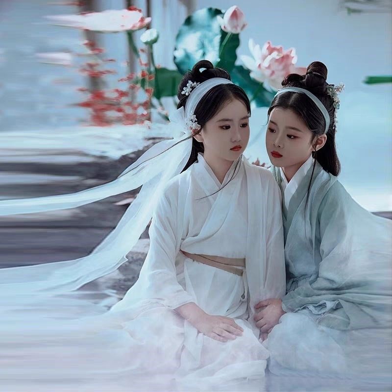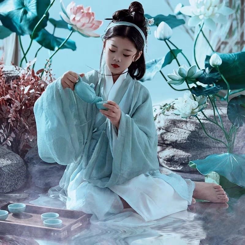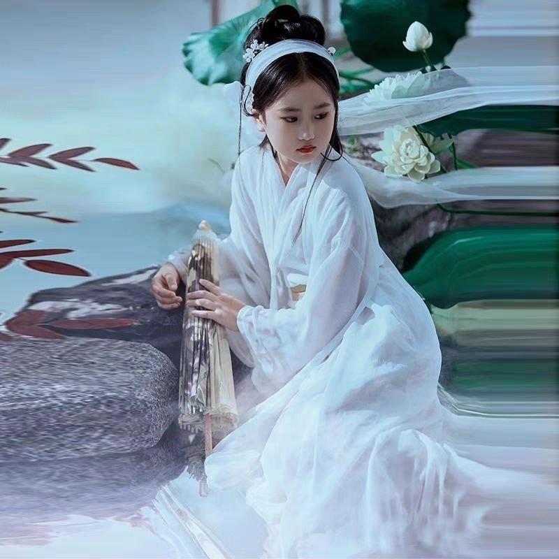📚 青蛇白蛇舞蹈服女童古装中国风古典演出连衣裙儿童魏晋风汉服春秋