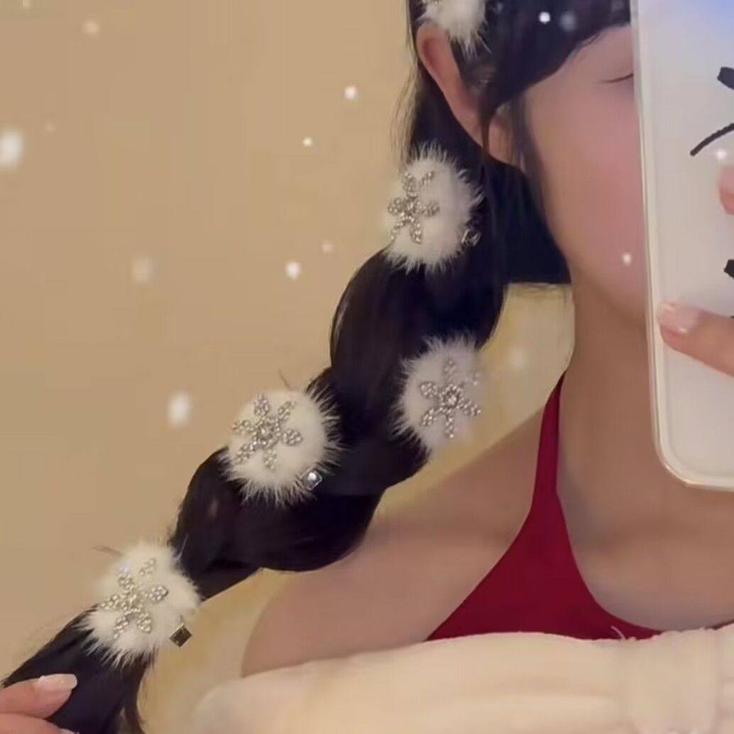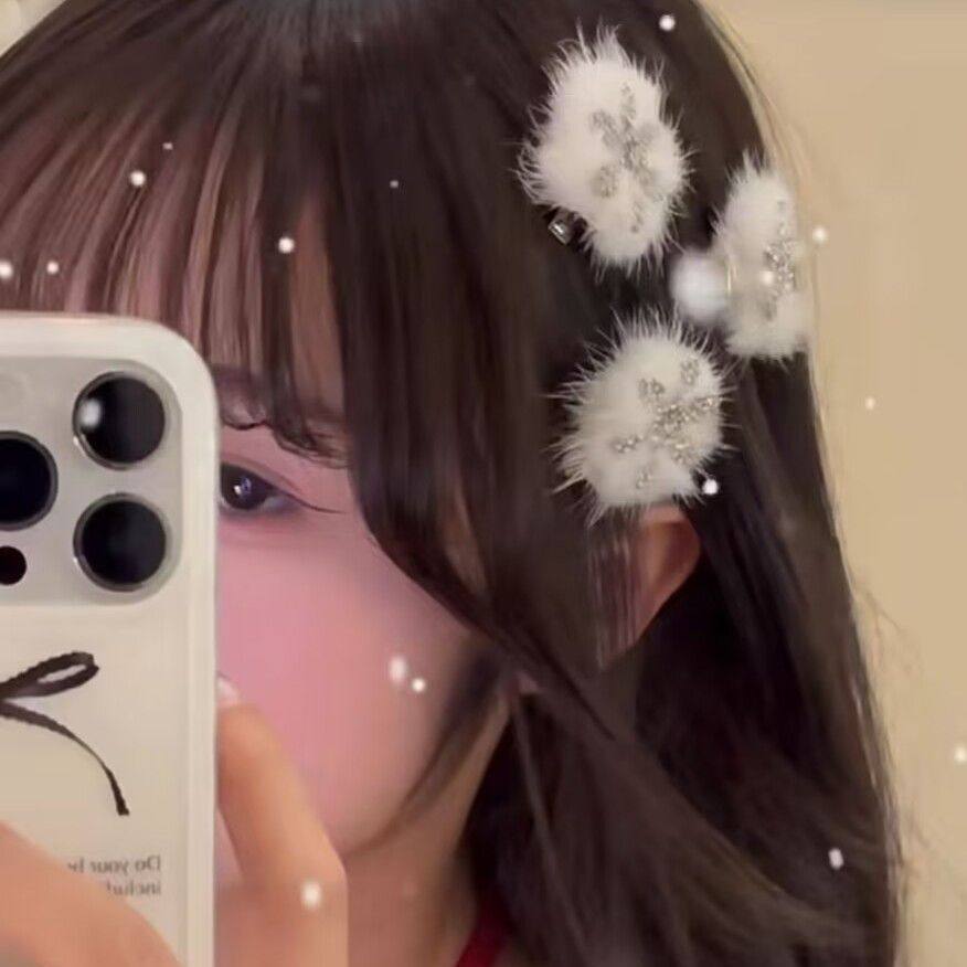 📚 甜美白头新款雪可替相遇可爱毛毛秋冬毛绒刘海夹子侧边夹雪花发夹