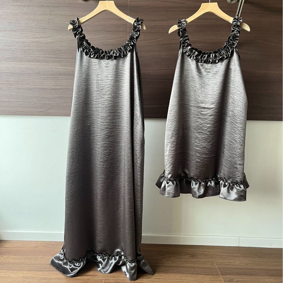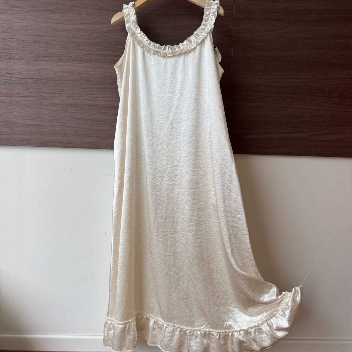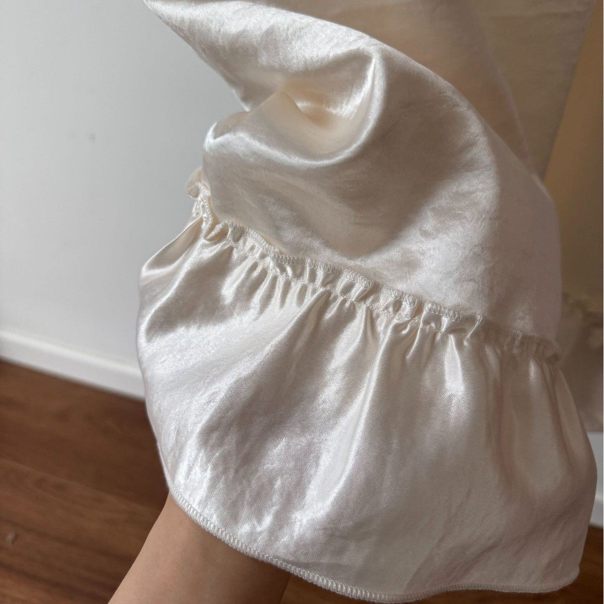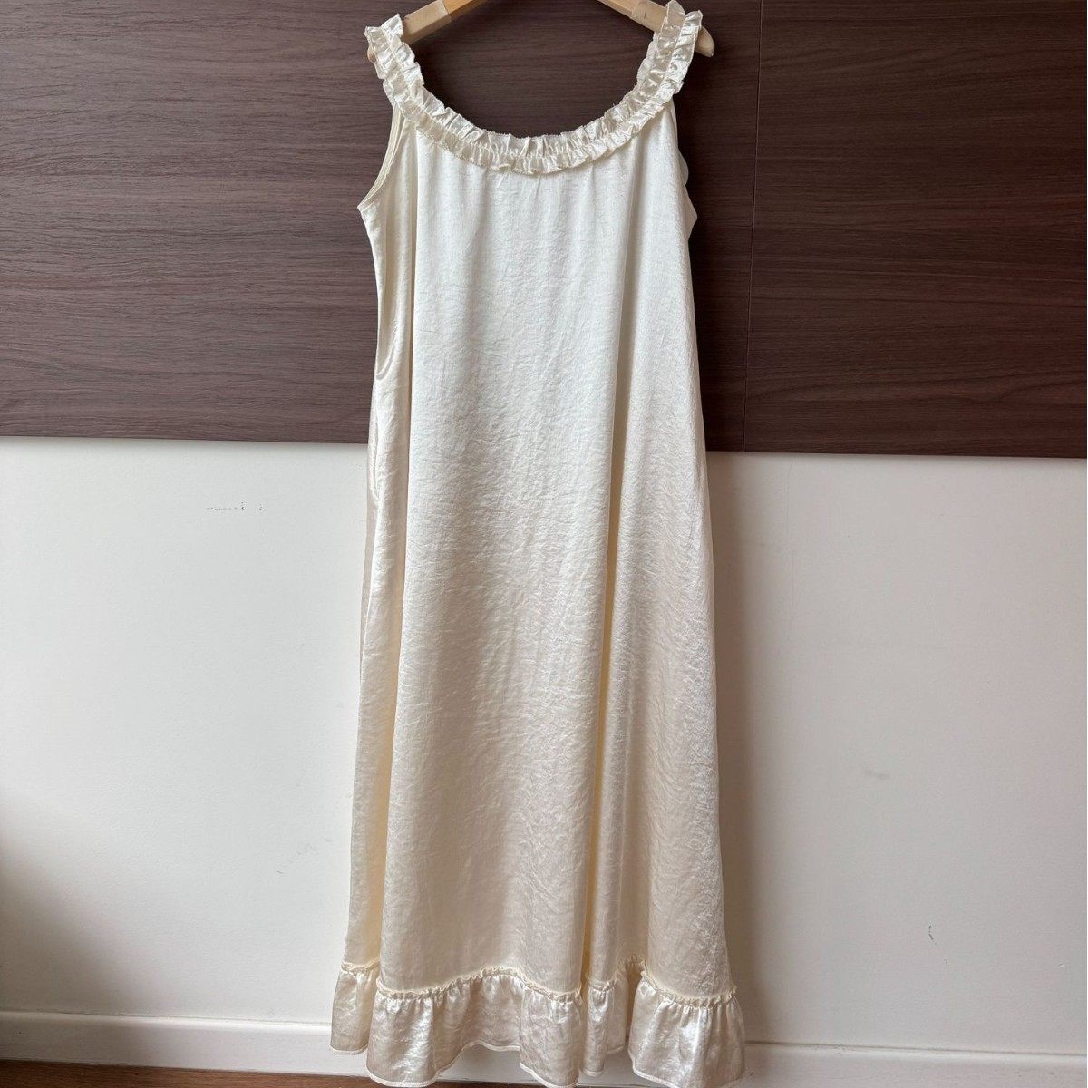 📚 实拍仿醋酸缎珍珠白公主睡裙有口袋宽松甜美光泽吊带木耳花边裙子