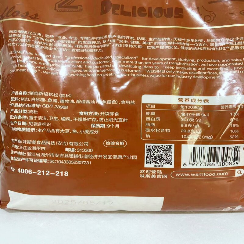 📚 味斯美猪肉新语松松1kg 儿童配粥猪肉肉松面包寿司肉松烘焙专用