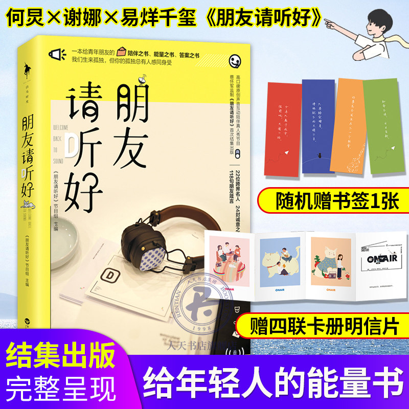 09¥ MF287 eL3HUktoJh4¥ https://m.tb.cn/h.7urhEEd 真火插画四联卡册+书签x1】朋友请听好 何炅谢娜易烊千玺节目 22位跨界名人24封诚意之信118句朋友箴言给青年朋友的书真人秀节目 --------------------- 【原售价】19.6元 【现售价】19.6元。