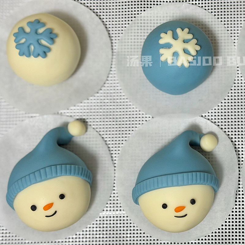 📚 汤果老师 冬季卡通可爱雪人馒头模具面食雪花模具通用烘焙工具