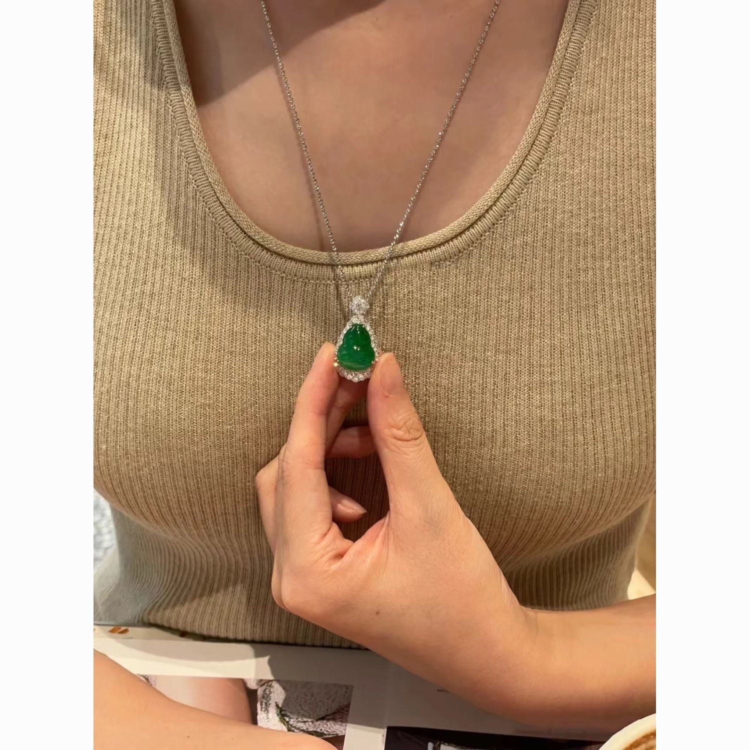 📚 天然缅甸冰种正阳绿翡翠葫芦吊坠镶嵌翠色玉石高级感项链轻奢女款