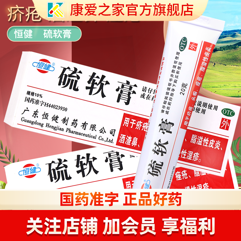 📚 恒健硫软膏20g皮肤外用硫磺乳膏湿疹皮炎疮瘙痒疥疮痤疮药膏正品