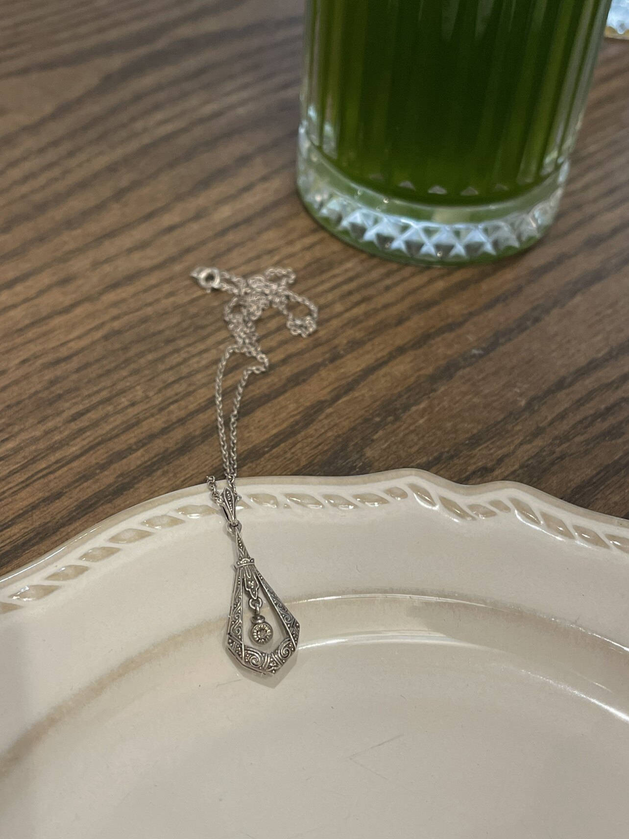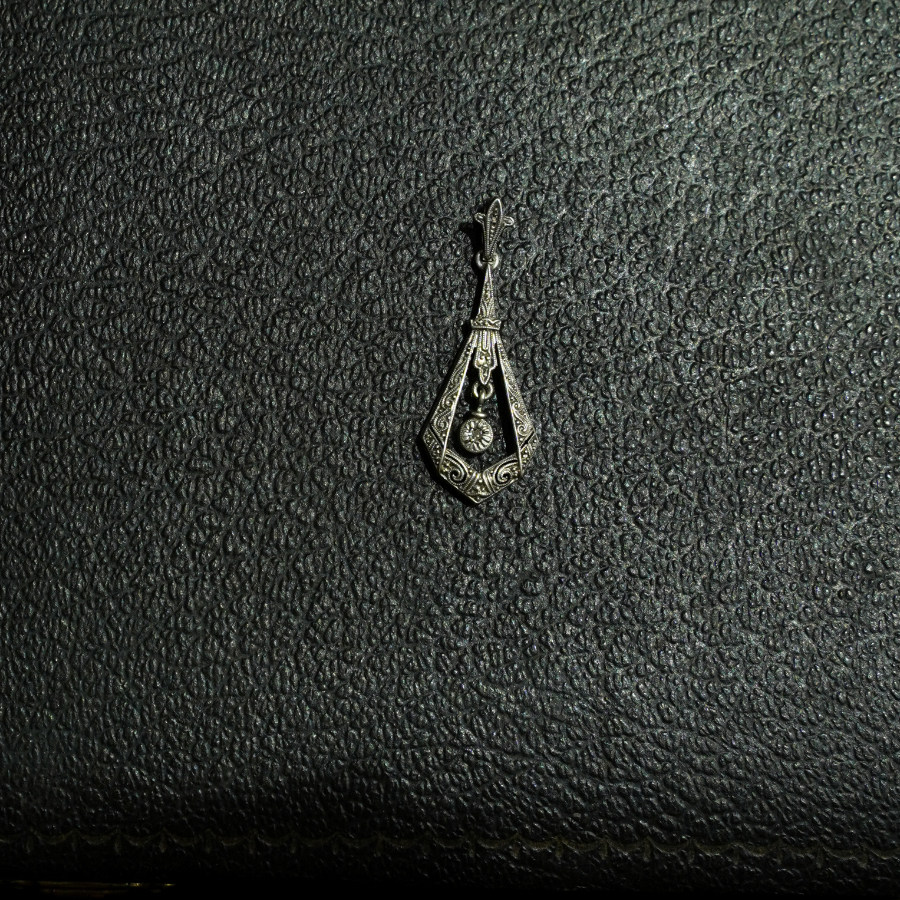 📚 art deco时期吊坠 阿呆 德国古董首饰S925银 雕花项链 水滴形宫廷