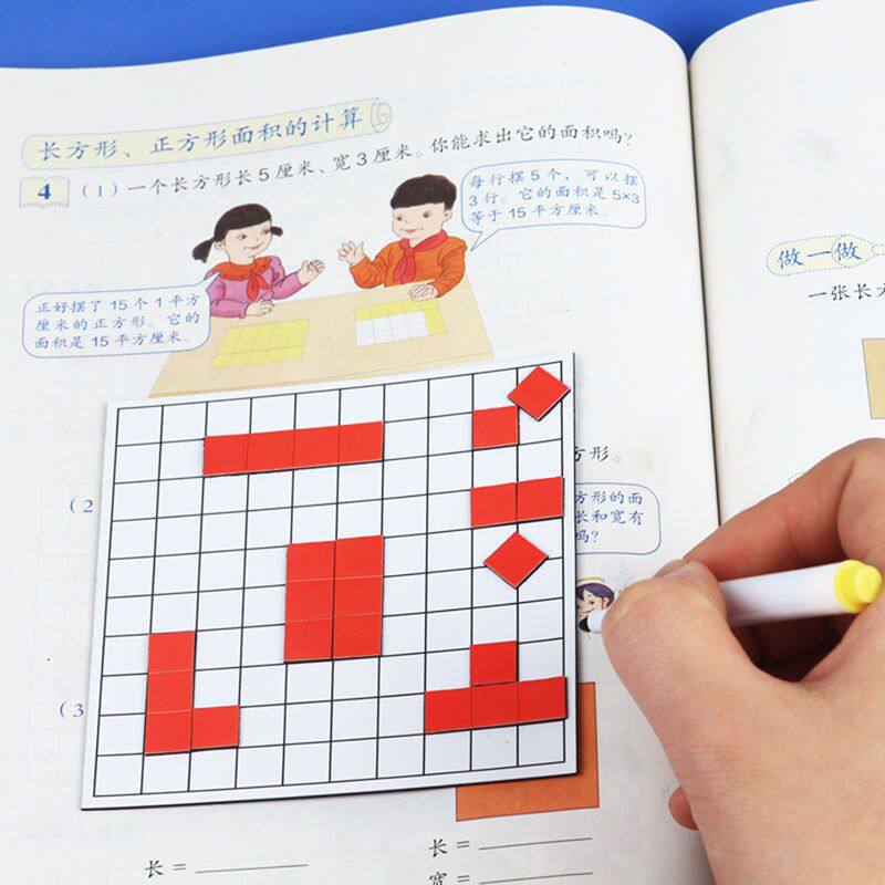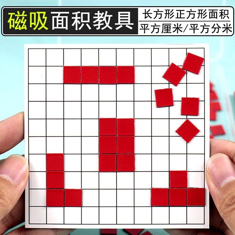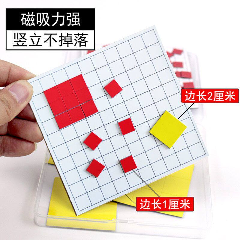 📚 磁性面积与周长套装学习一平方厘米分米正方形长方形三年级数学磁吸教具小方块学具演示器磁力边长面积测量器