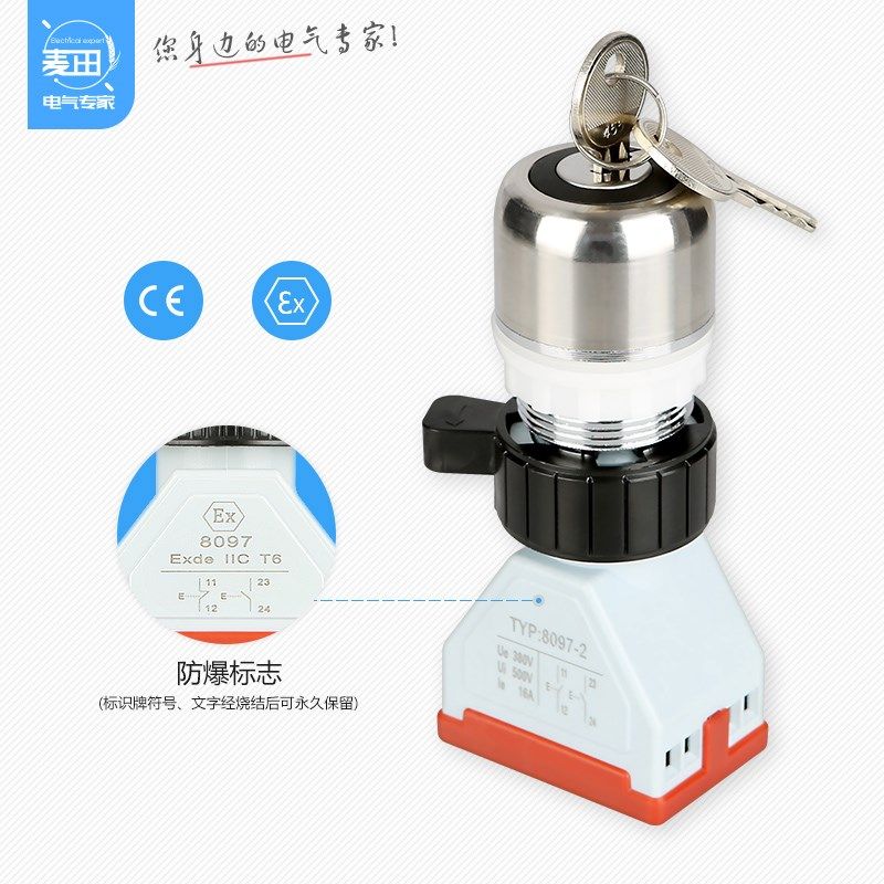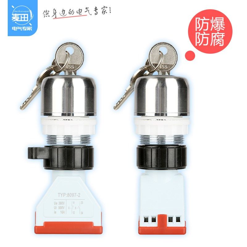 📚 BA8097-2金属不锈钢隔爆防爆钥匙控制旋钮二档开关30MM常开常闭