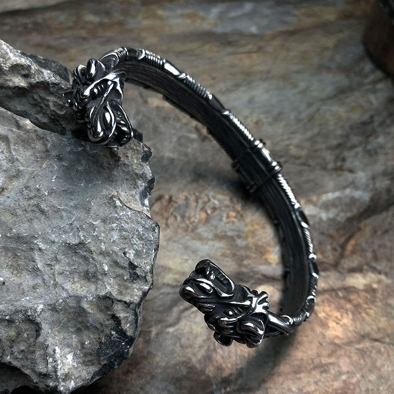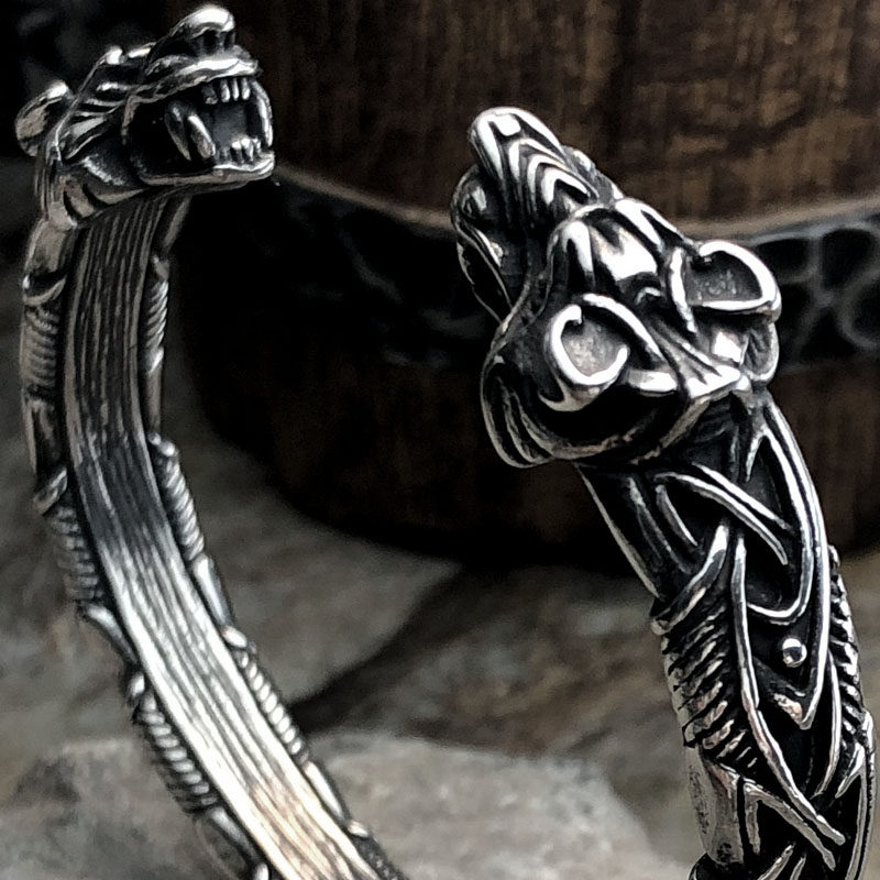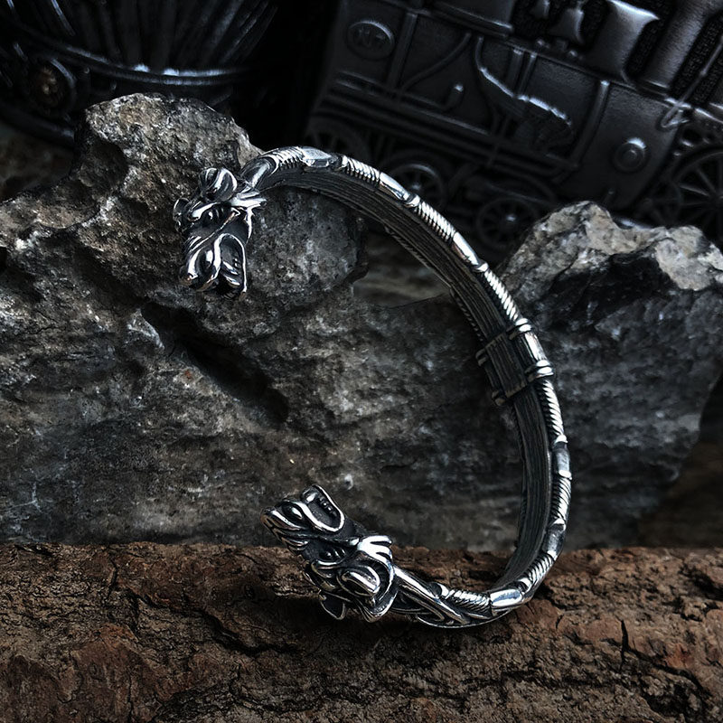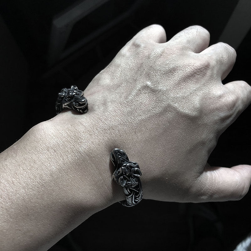 📚 北欧配饰维京Fenrir双狼头手镯男钛钢个性潮流手环饰手链高级感