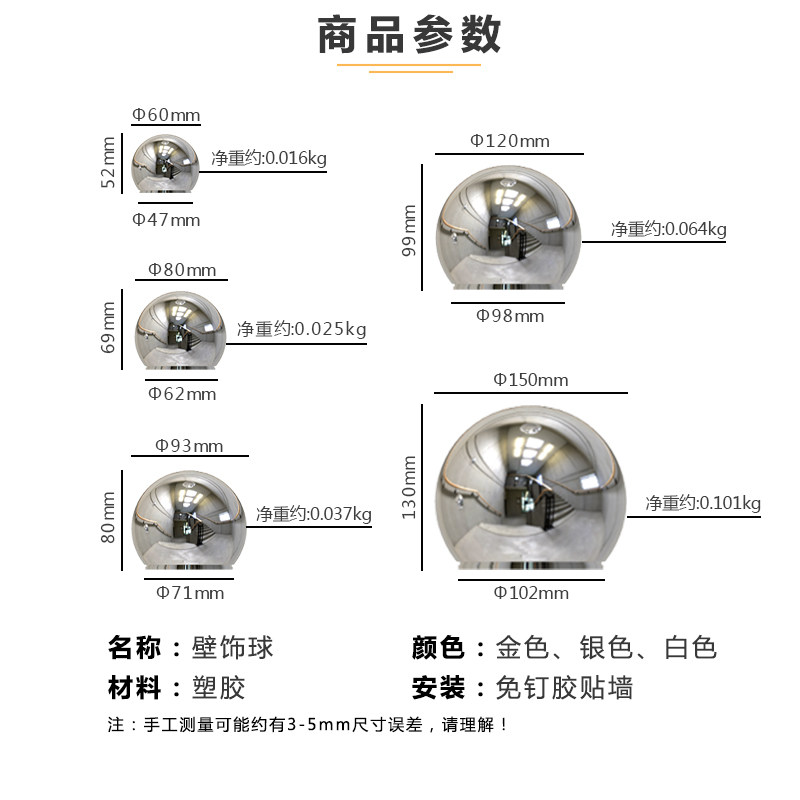 📚 壁挂北欧仿不锈钢圆球艺术免钉墙饰金属装饰客厅墙上饰品遮丑挂饰