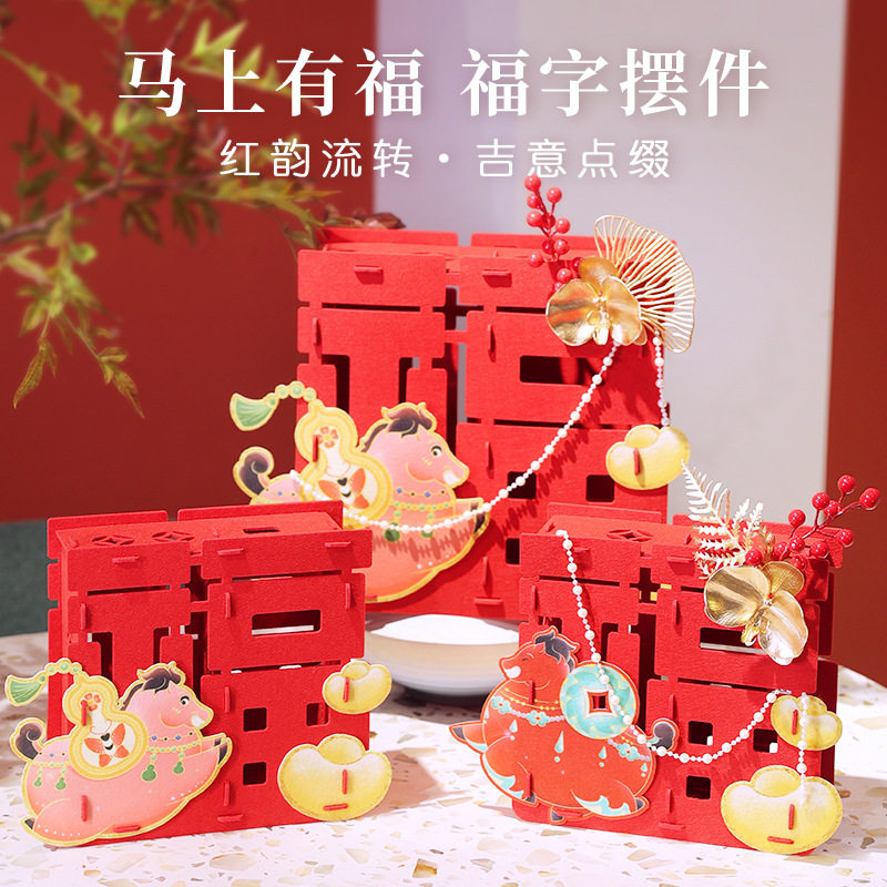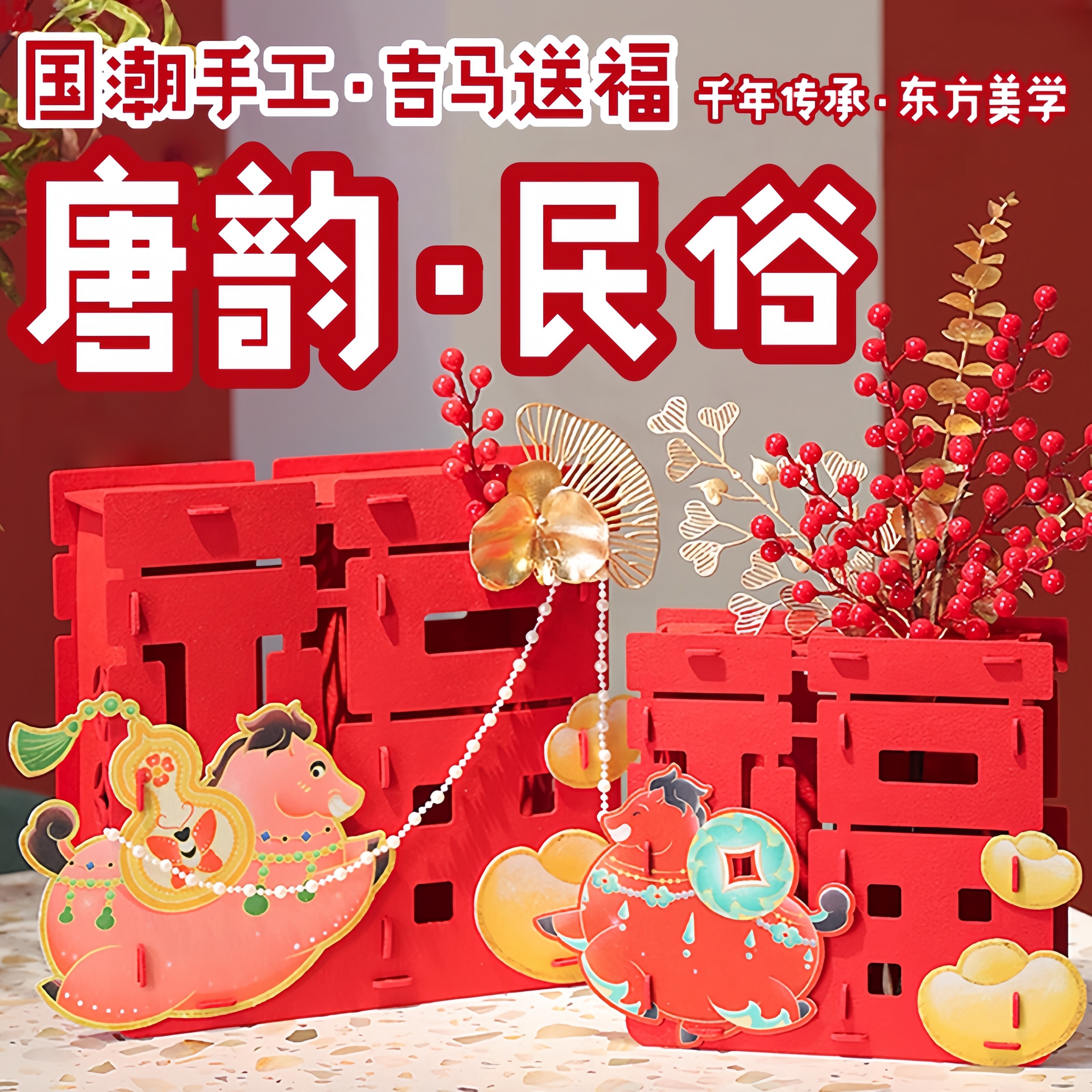 📚 春节手工diy立体福字马摆件材料社区国风活动制作过年装饰布置新