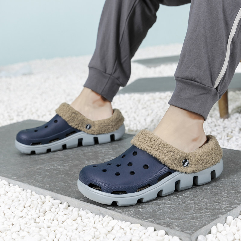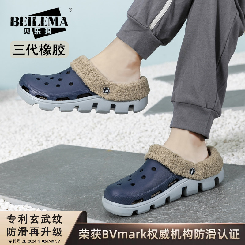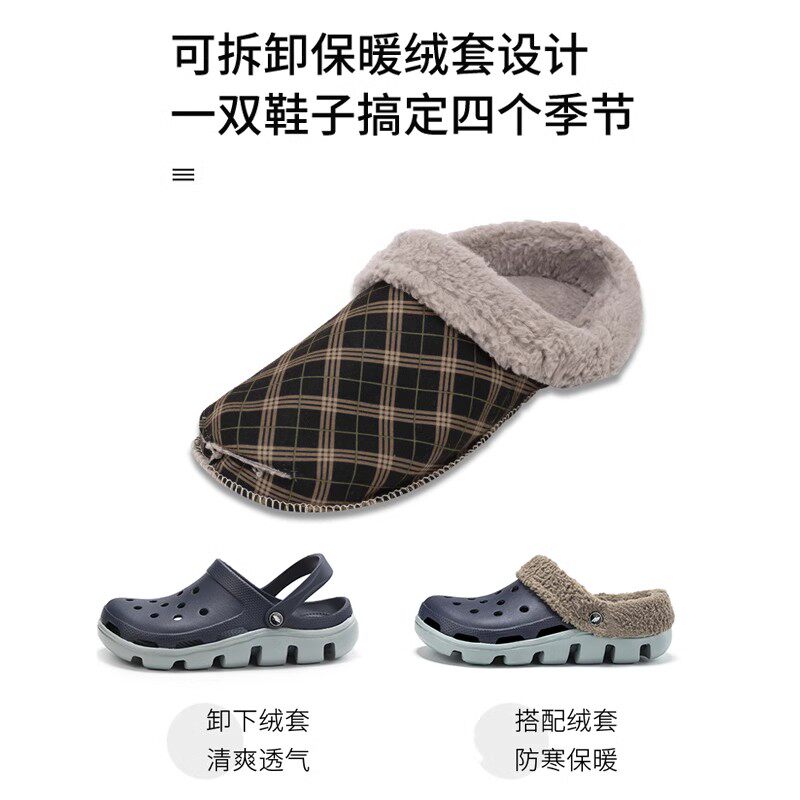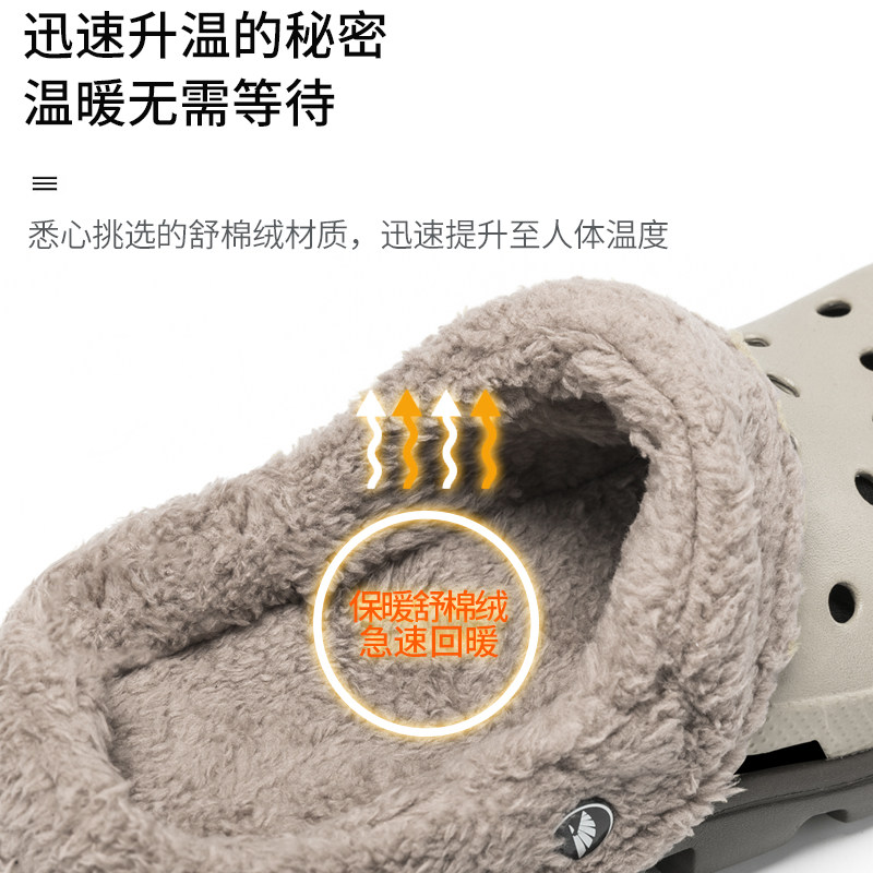 📚 加绒洞洞鞋男士内胆冬季居家大码厚底防滑软底室内保暖毛毛棉拖鞋