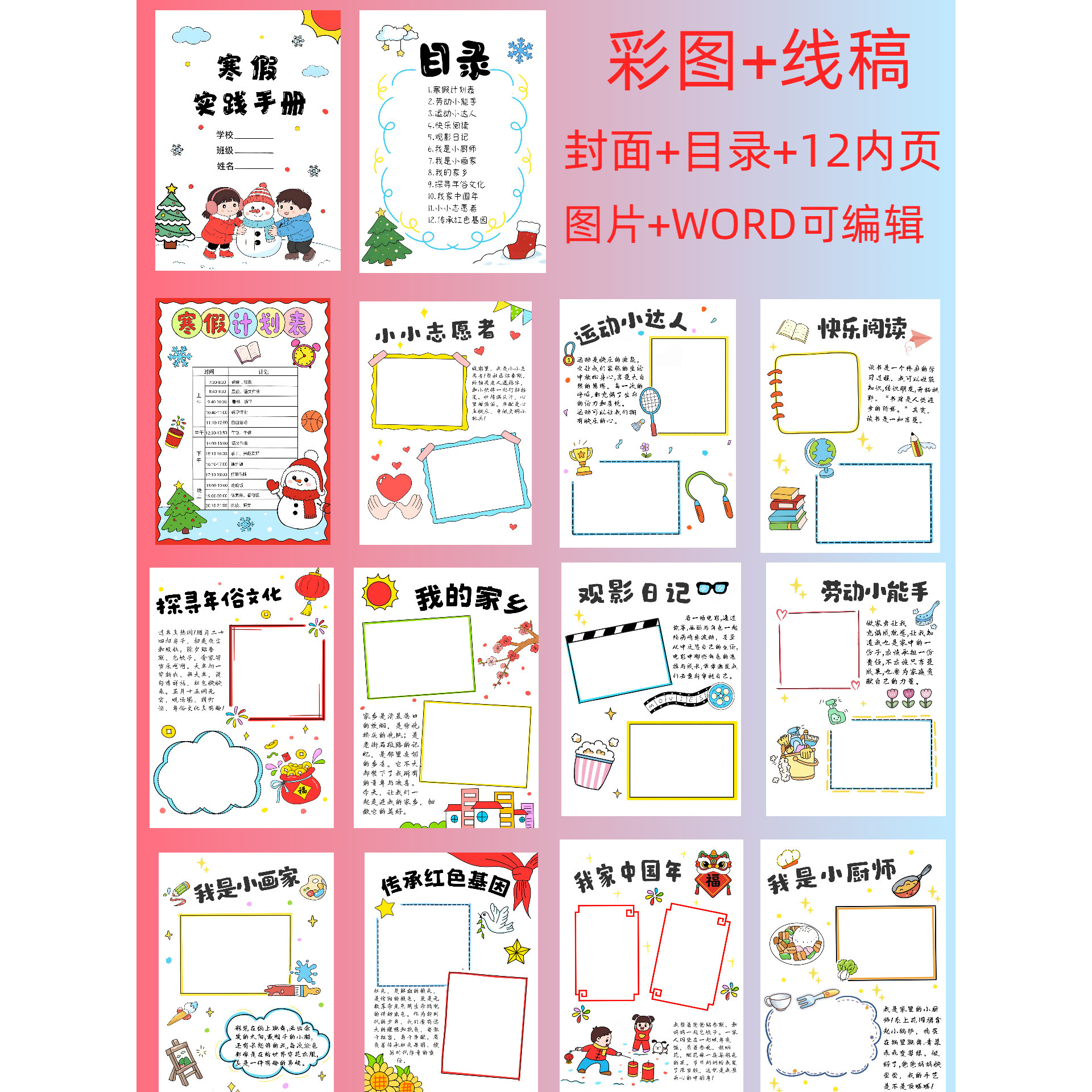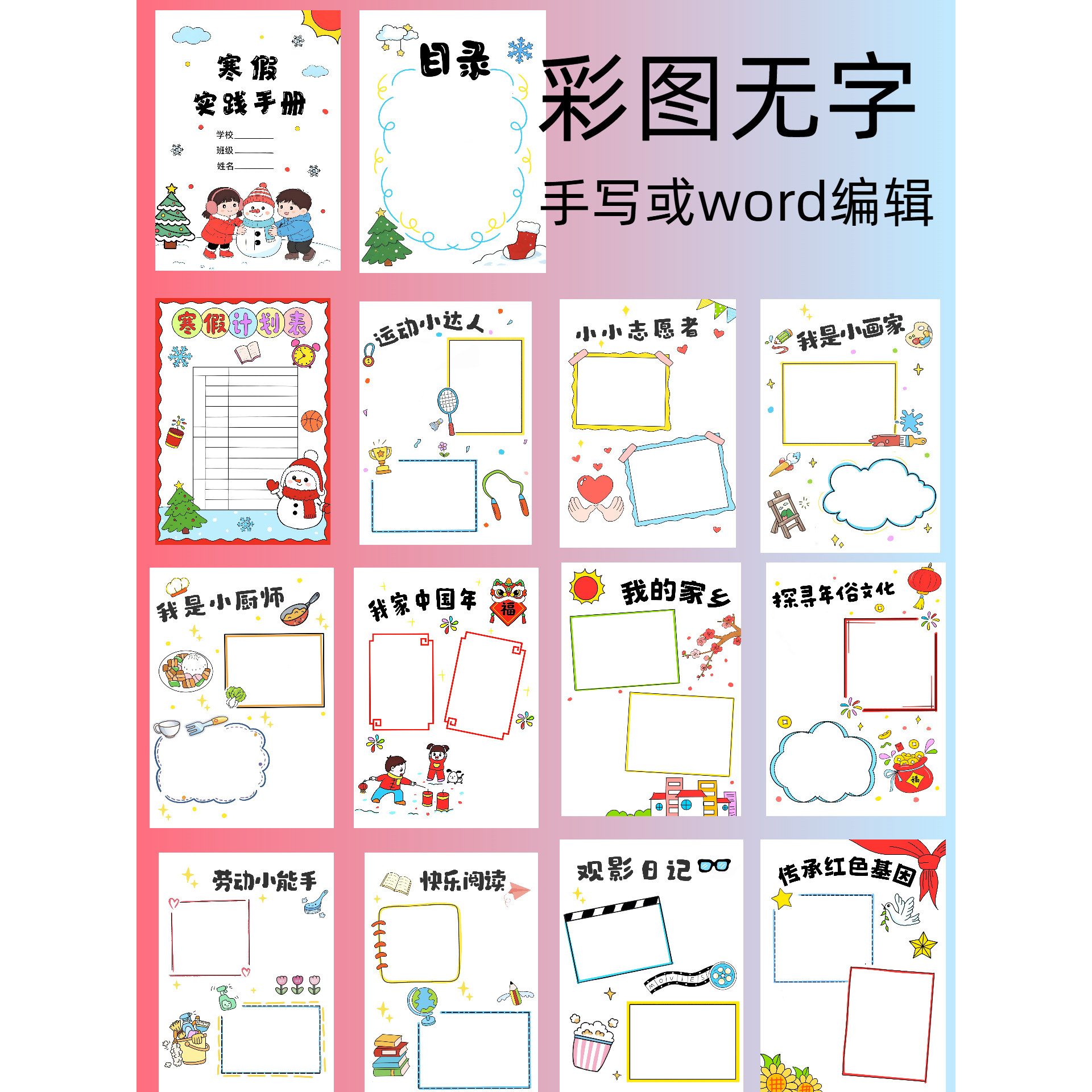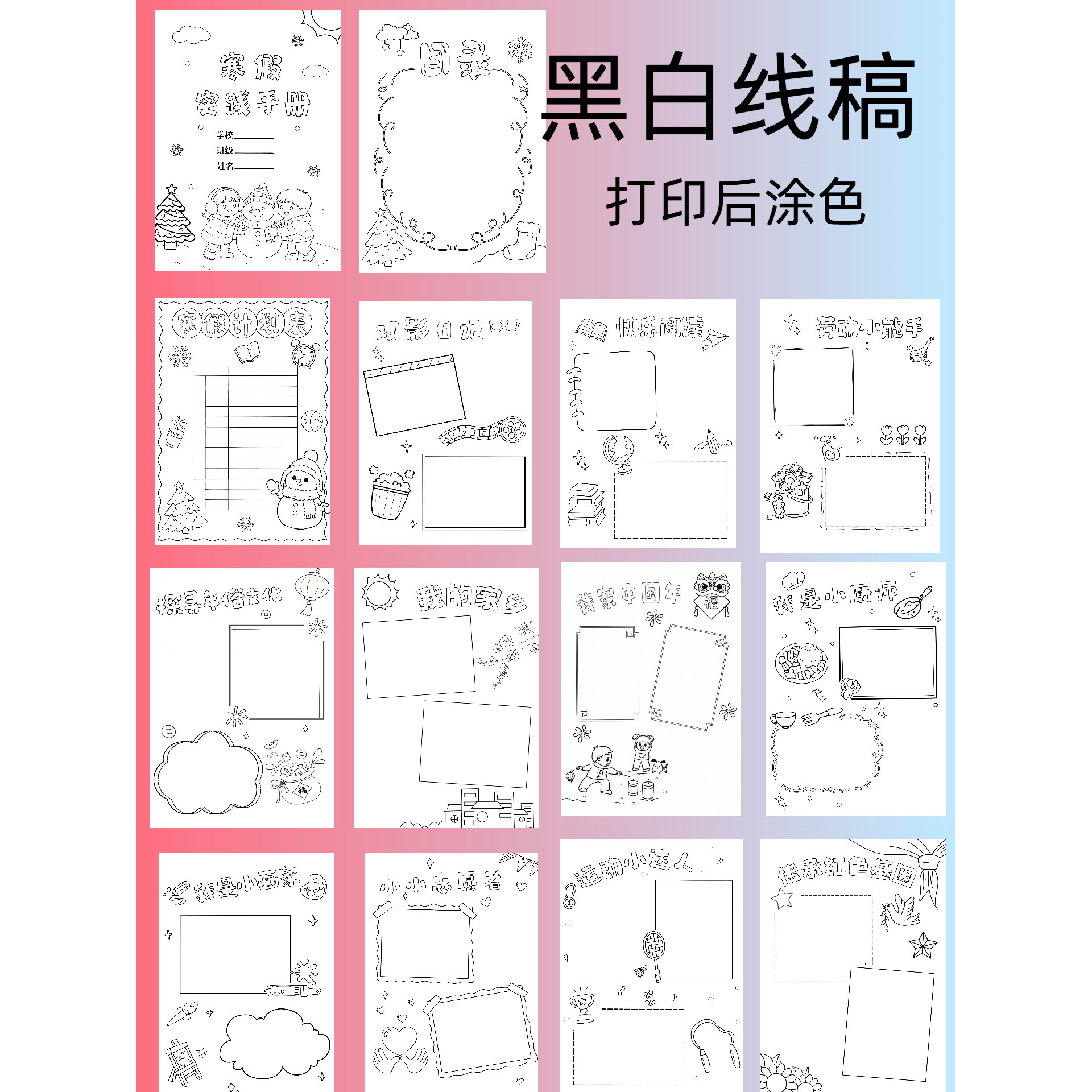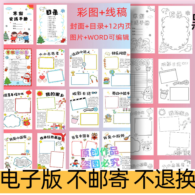 📚 d73寒假实践活动手册小学生寒假作业模板手抄报线稿word可编辑