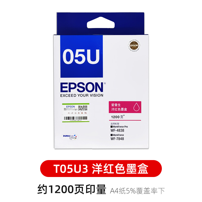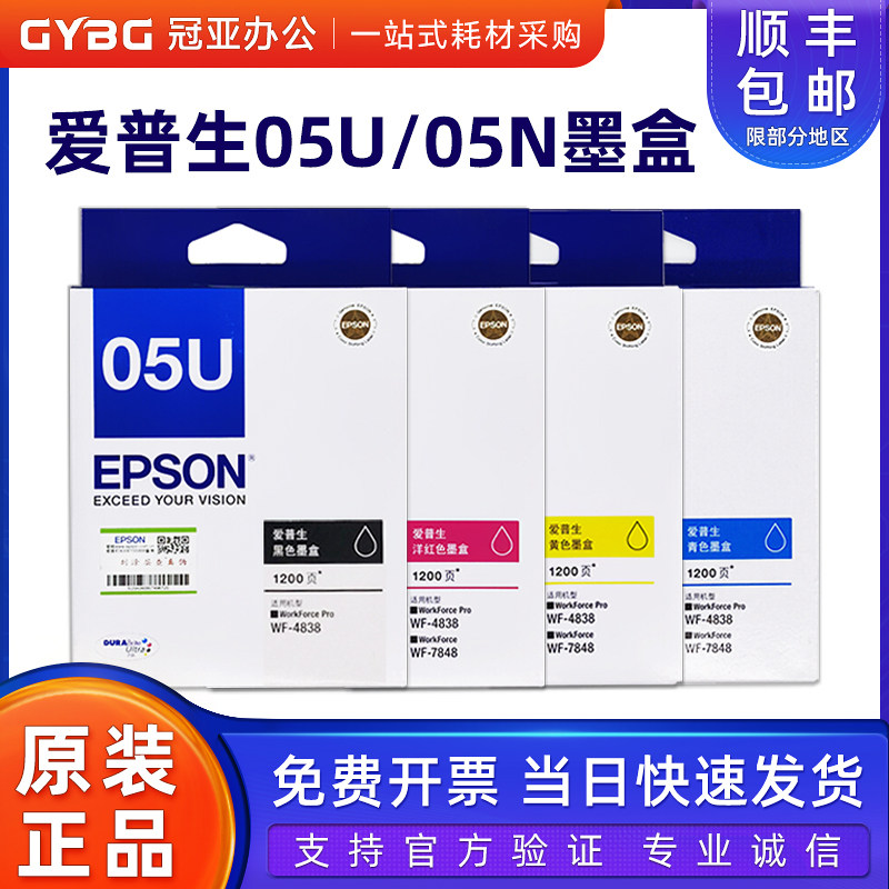 📚 原装爱普生T05U墨盒T05N1黑色适用WF-4838 7318 7848打印机墨水盒