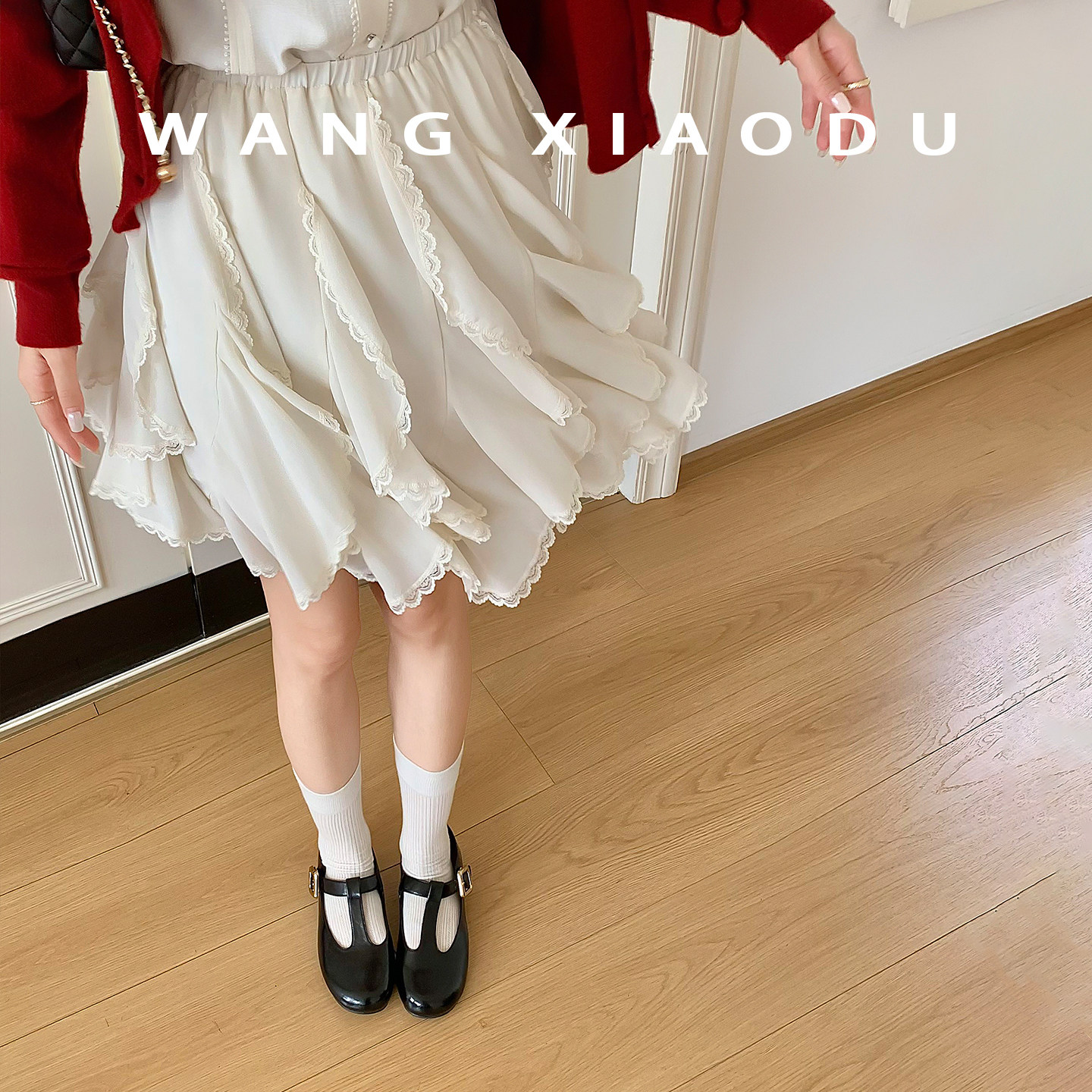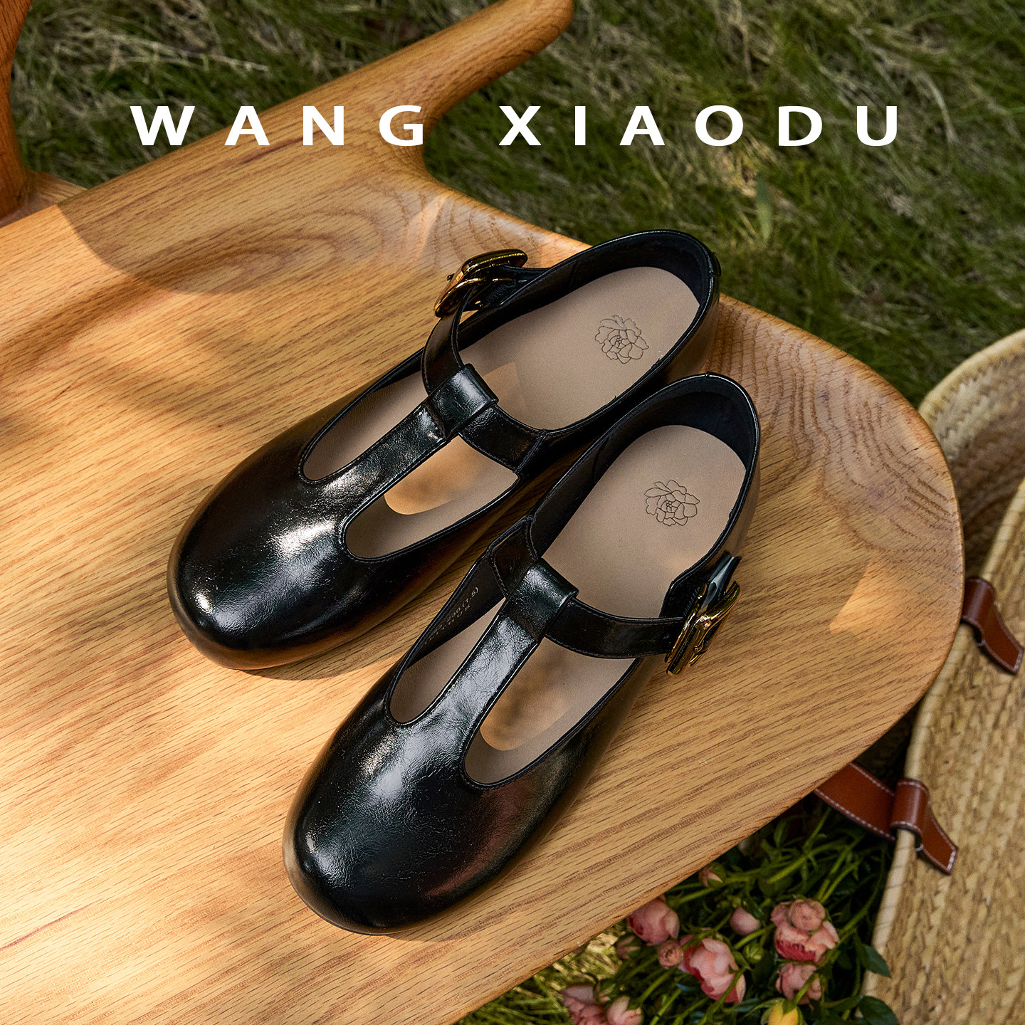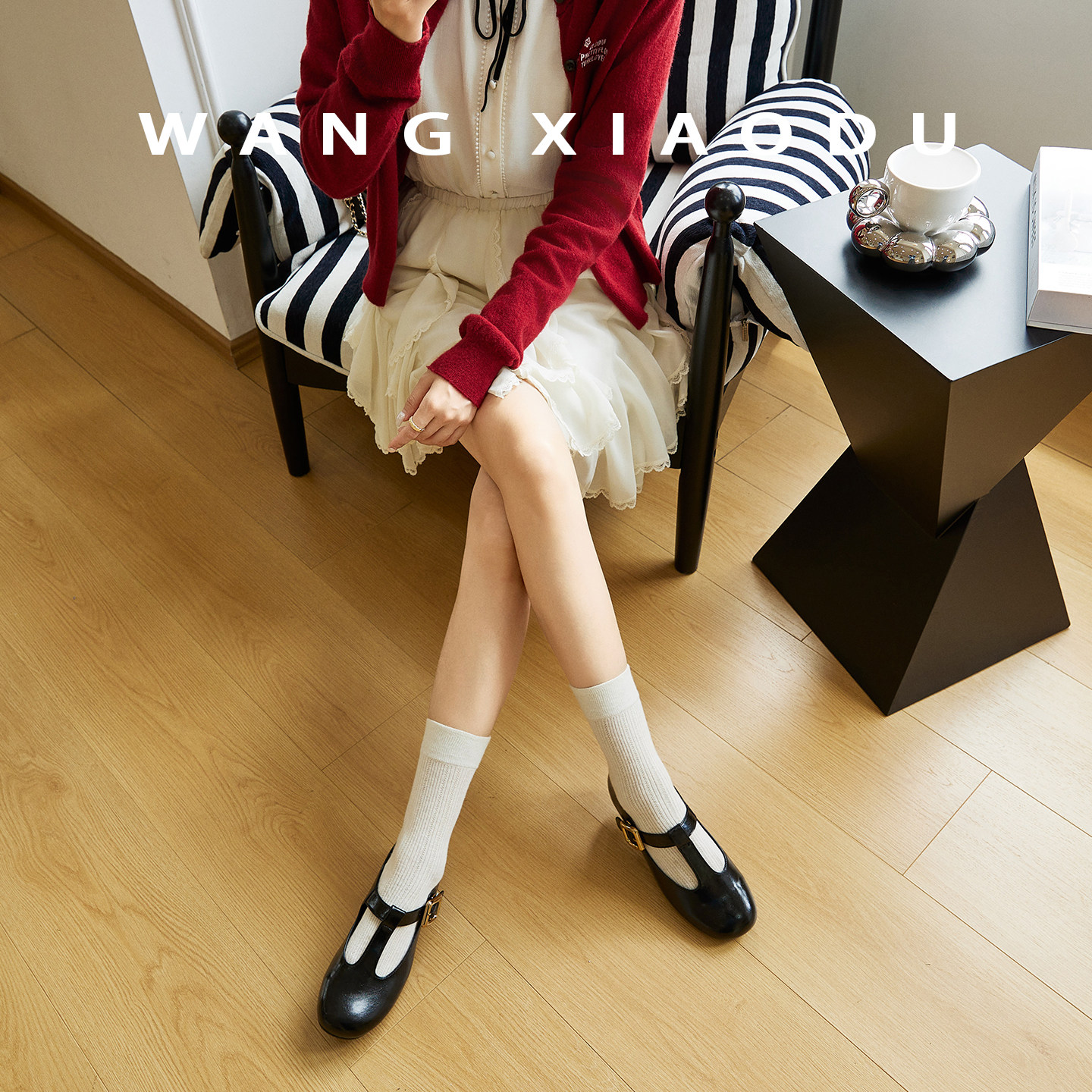 📚 【王小毒】法式面包鞋○软萌T字带玛丽珍女鞋复古粗跟绒面单鞋秋