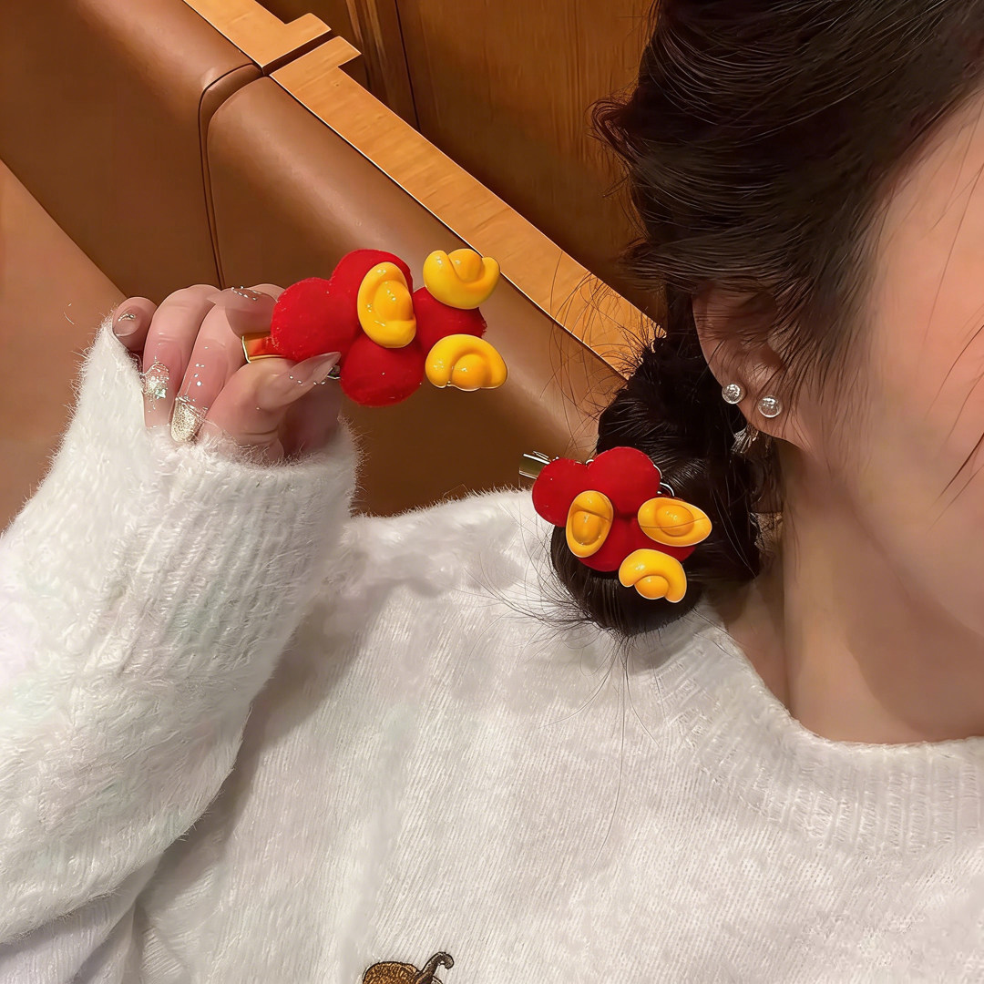 📚 新年氛围感红色毛球金元宝发夹女2026新款春节拜年侧边夹发卡头饰