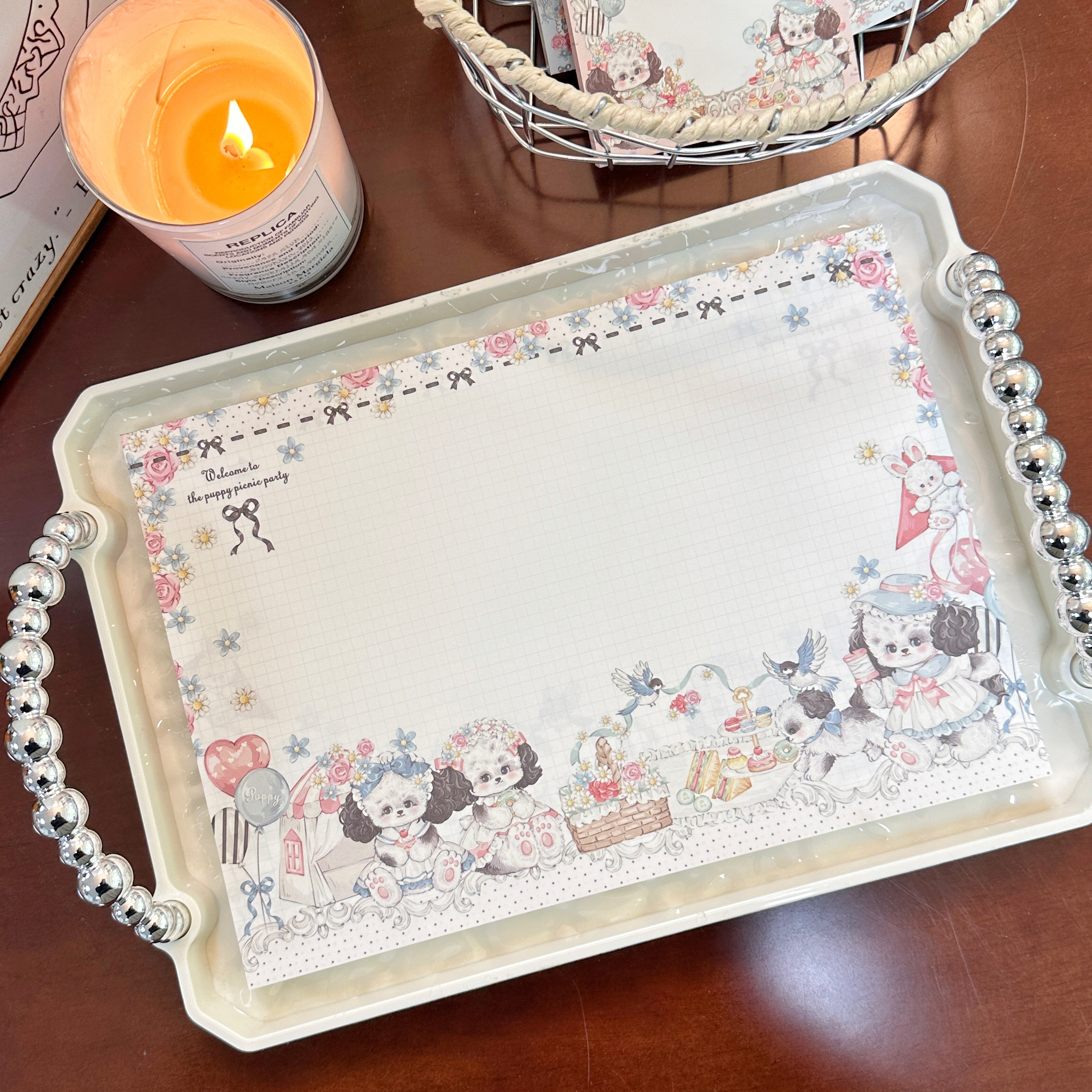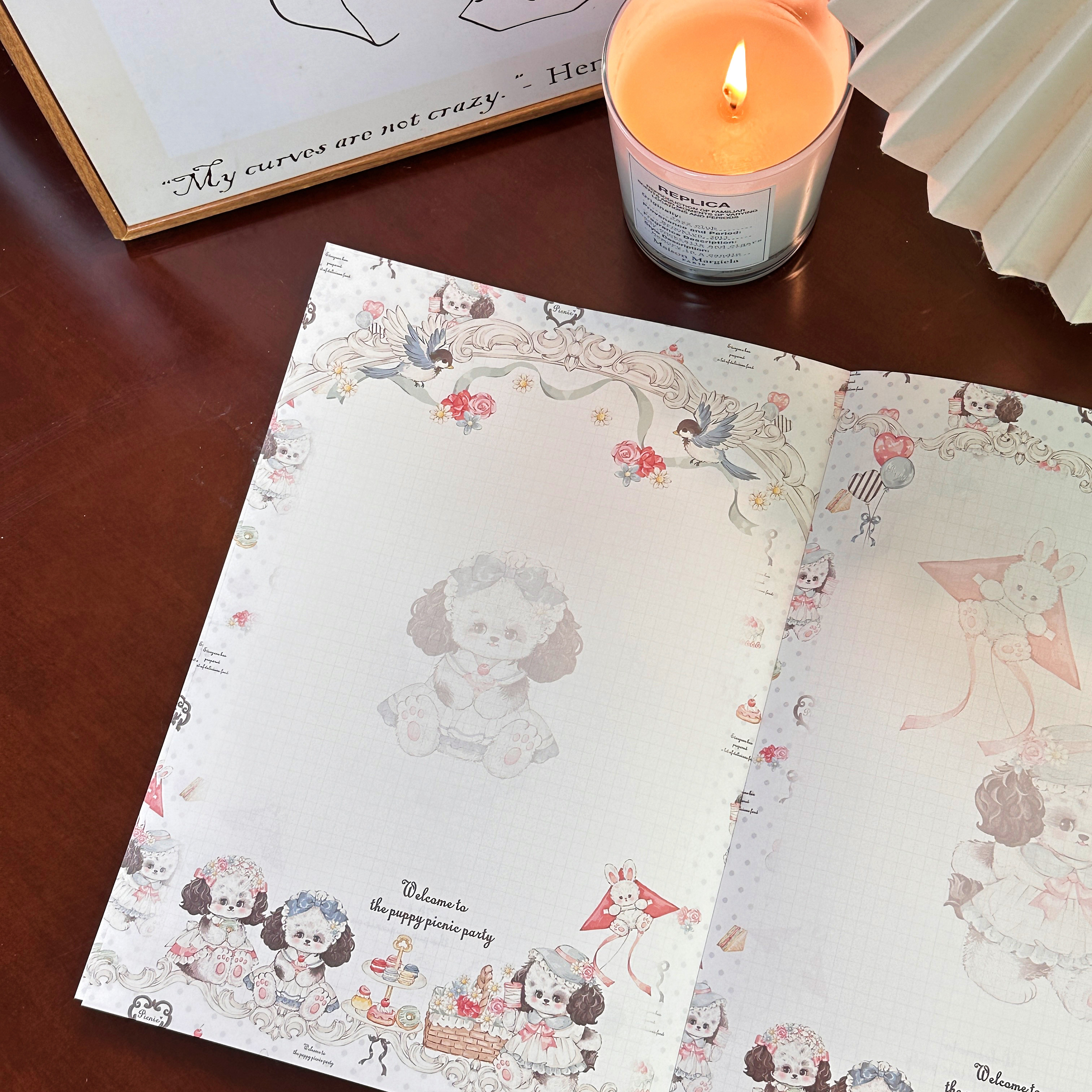 📚 Pink berry原创设计野餐小狗系列可撕双面120gB5拍纸本留言本