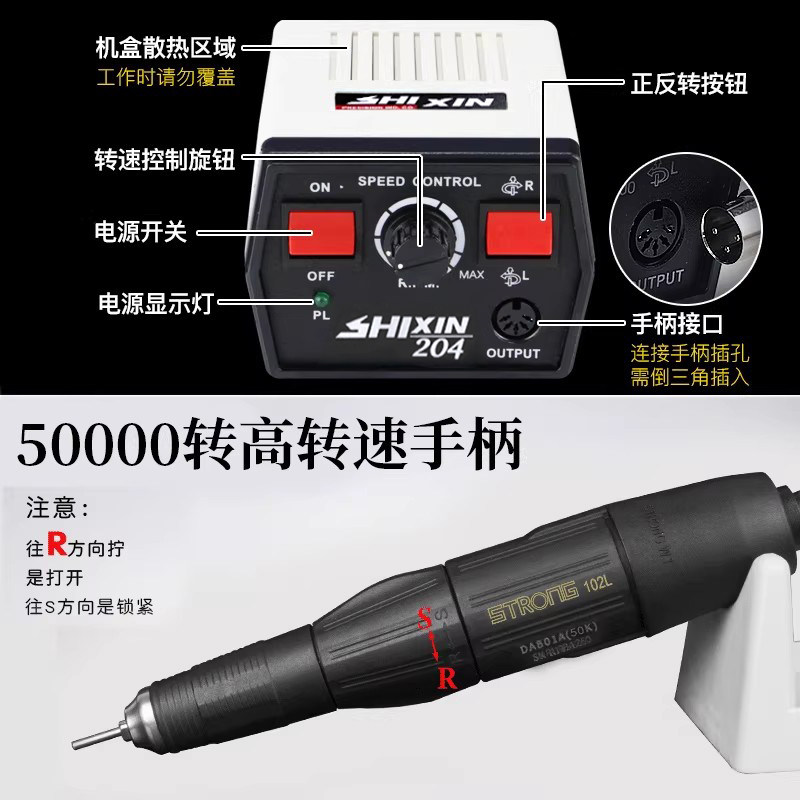 📚 世新204牙机雕刻机小型玉石翡翠牙科打磨机电动核雕木雕玉雕工具