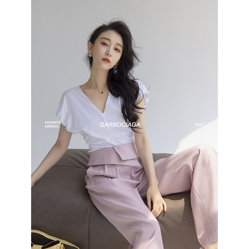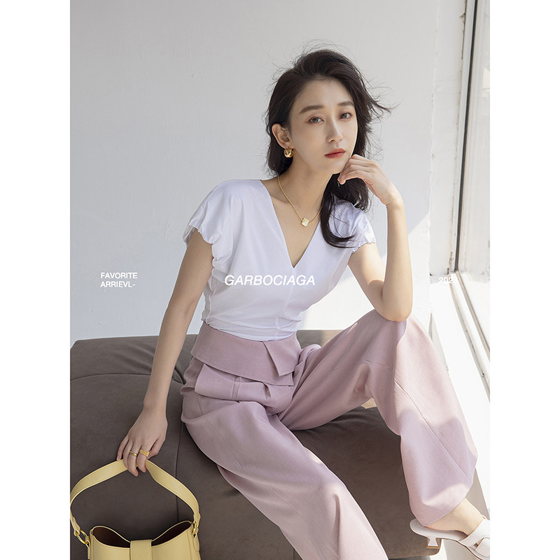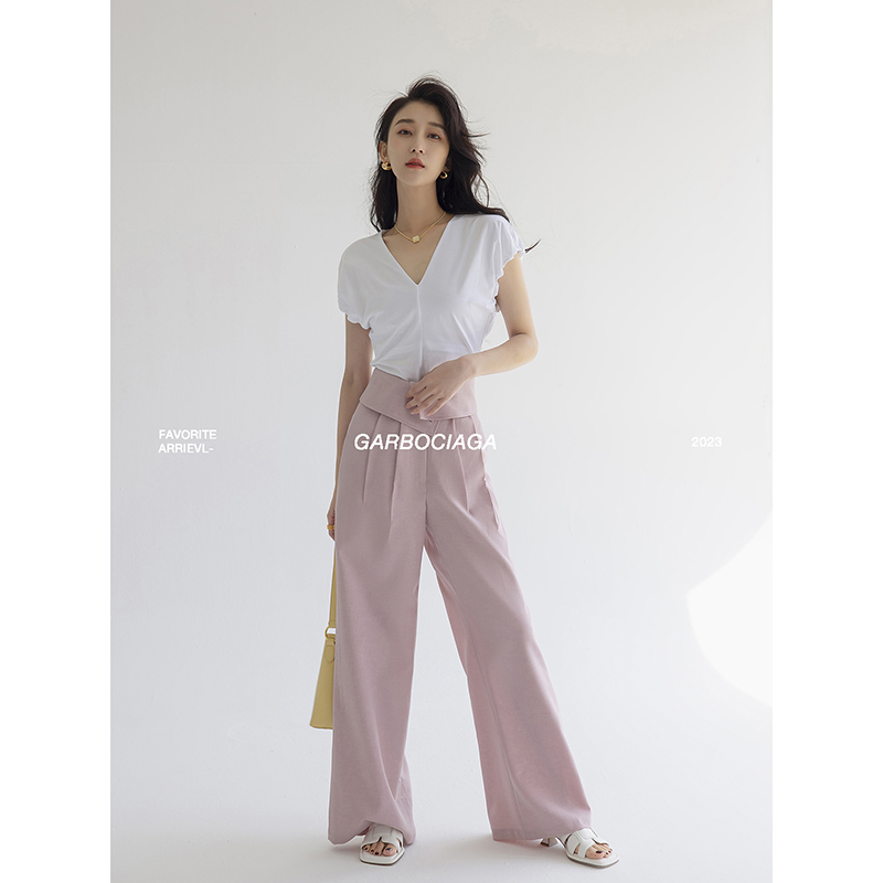 📚 Garbociaga龍喜儿 旺角卡门 高腰纹理腰封垂感抗皱休闲阔腿裤6459