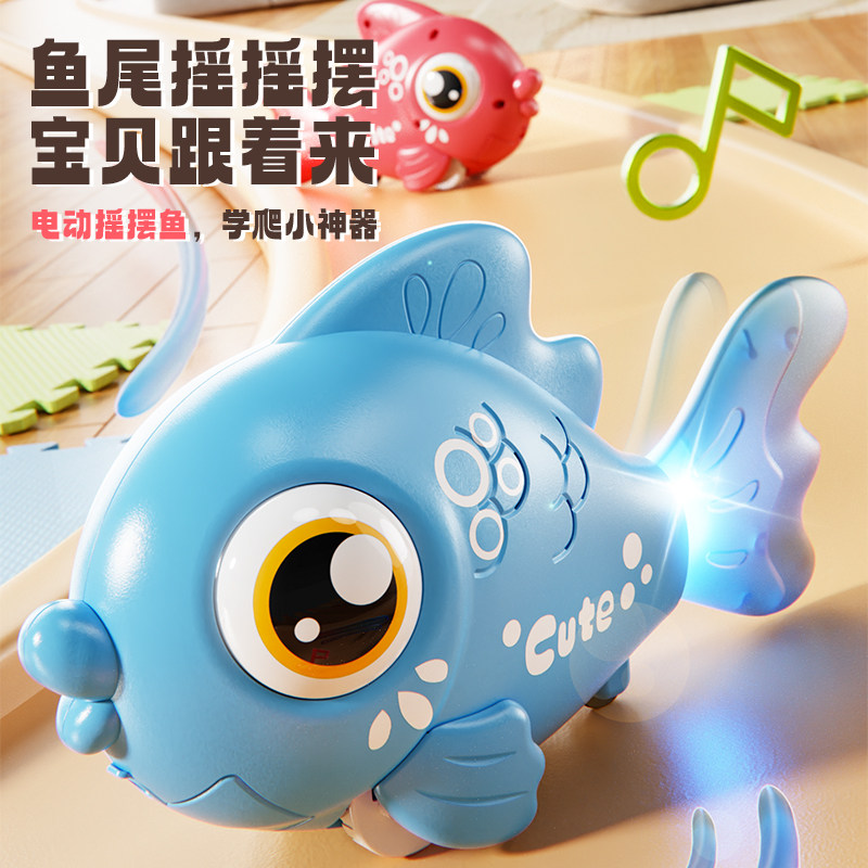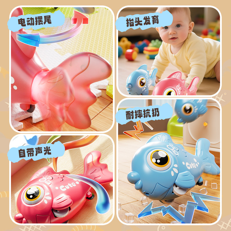 📚 电动小丑鱼玩具婴儿抬头练习会动的万向仿真动物电子鱼0-1岁2新款