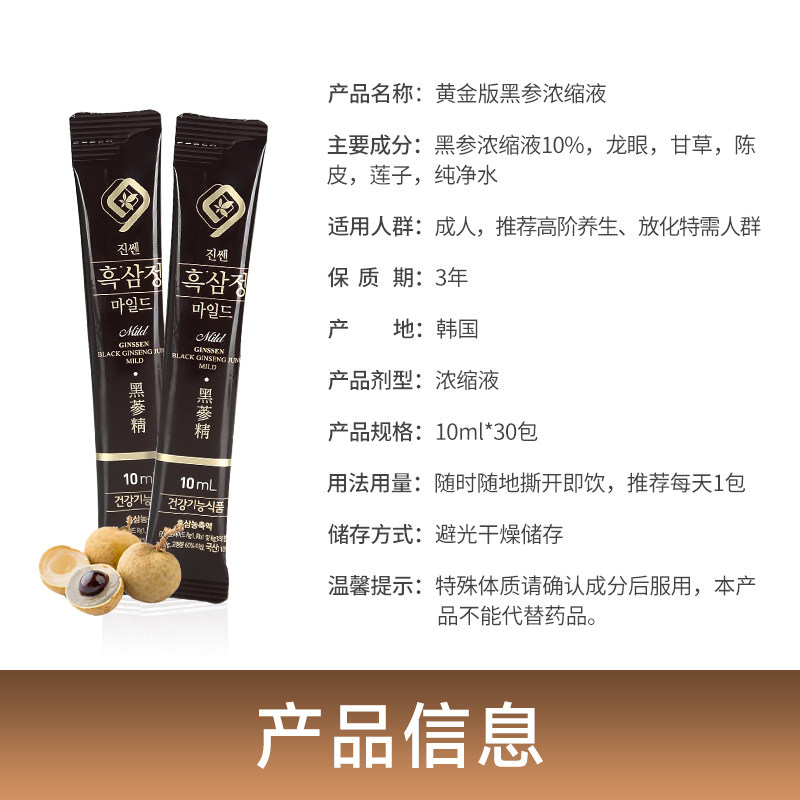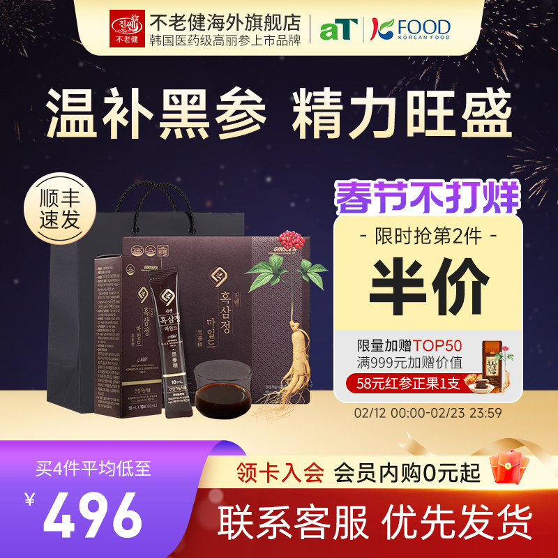 📚 不老健高丽参韩国红参液礼盒装正品滋补气血肾固精黑参浓缩液30包