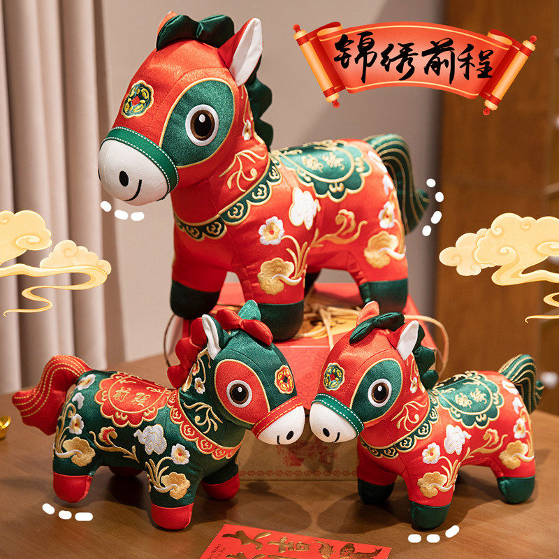 📚 国风锦绣前程小马公仔重工刺绣生肖马吉祥物礼盒装招财一对摆件