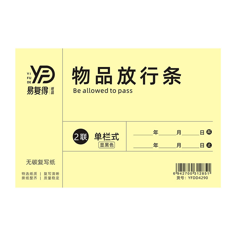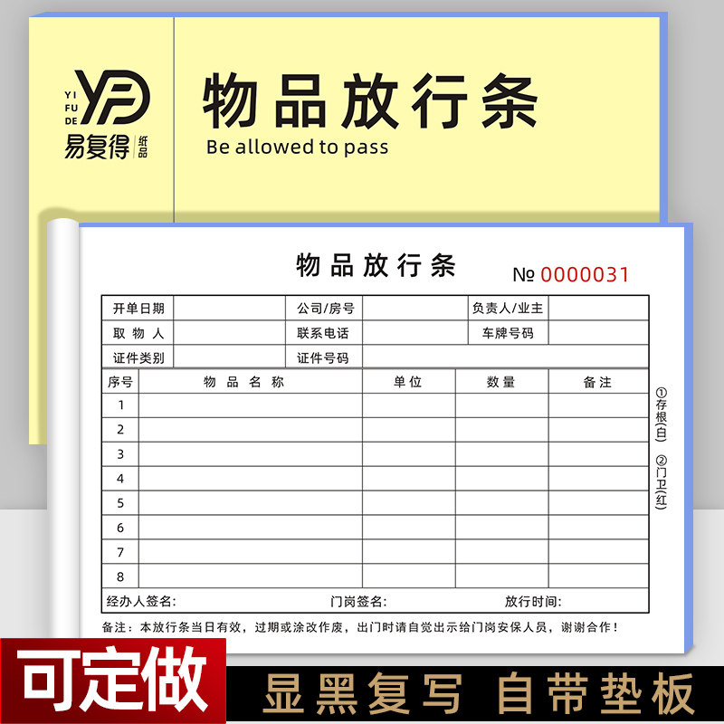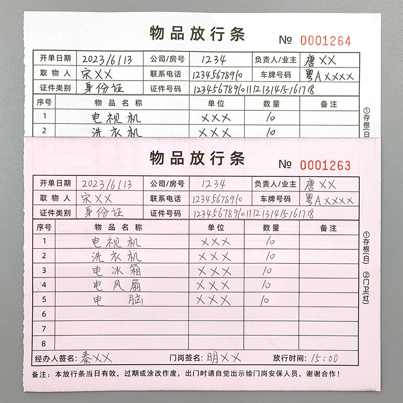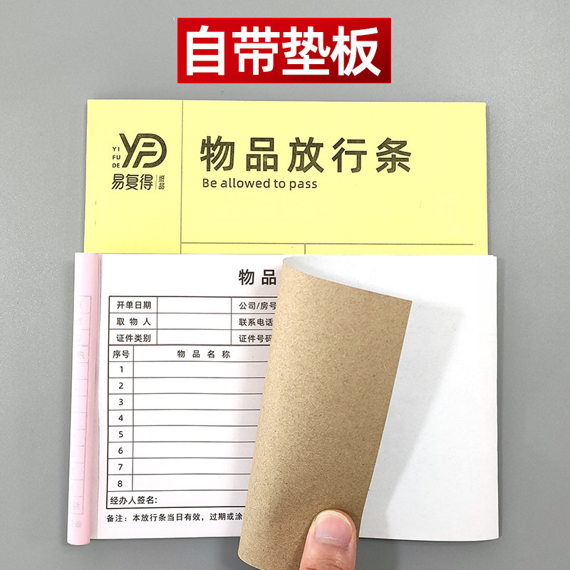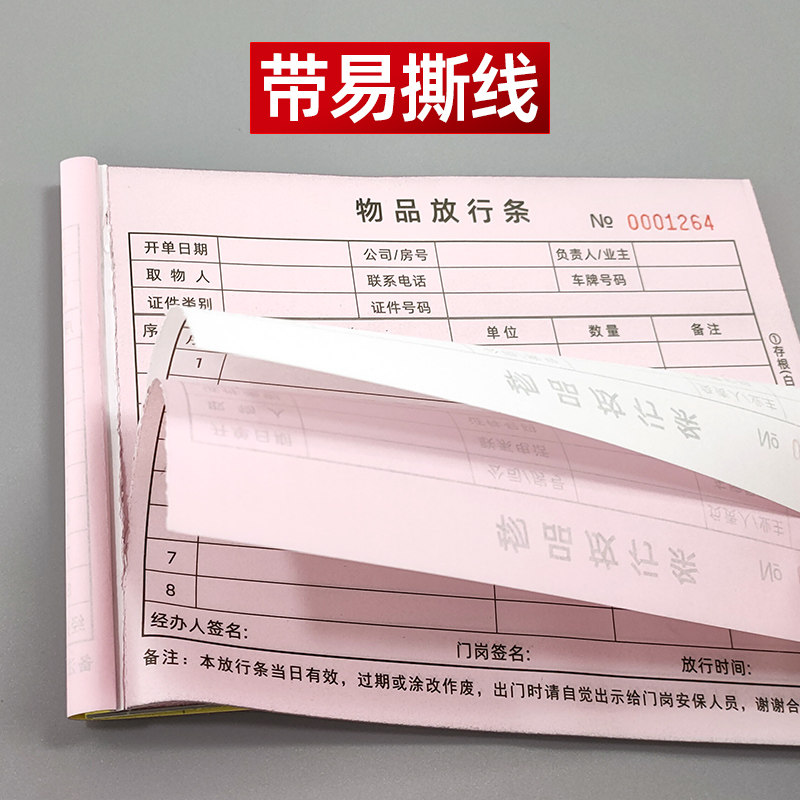 📚 物品放行条二联无碳复写货物出厂放行条门卫保安物品出门证可定做