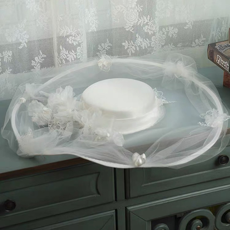 📚 2024夏新品法式白色晚宴礼帽女 优雅婚纱写真配饰帽旅拍发式